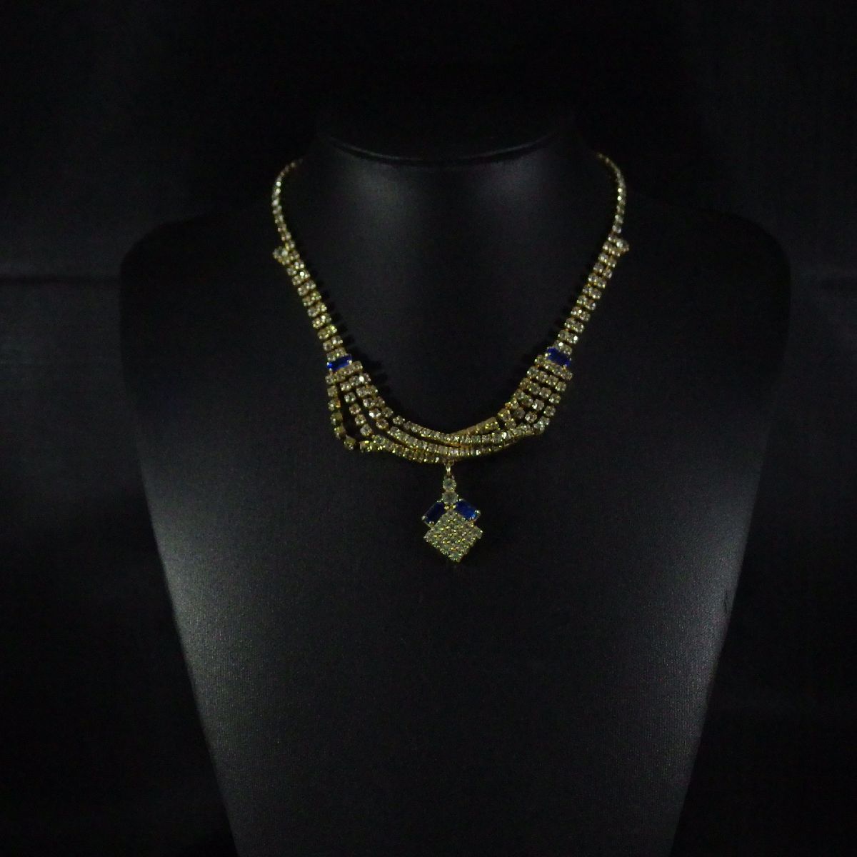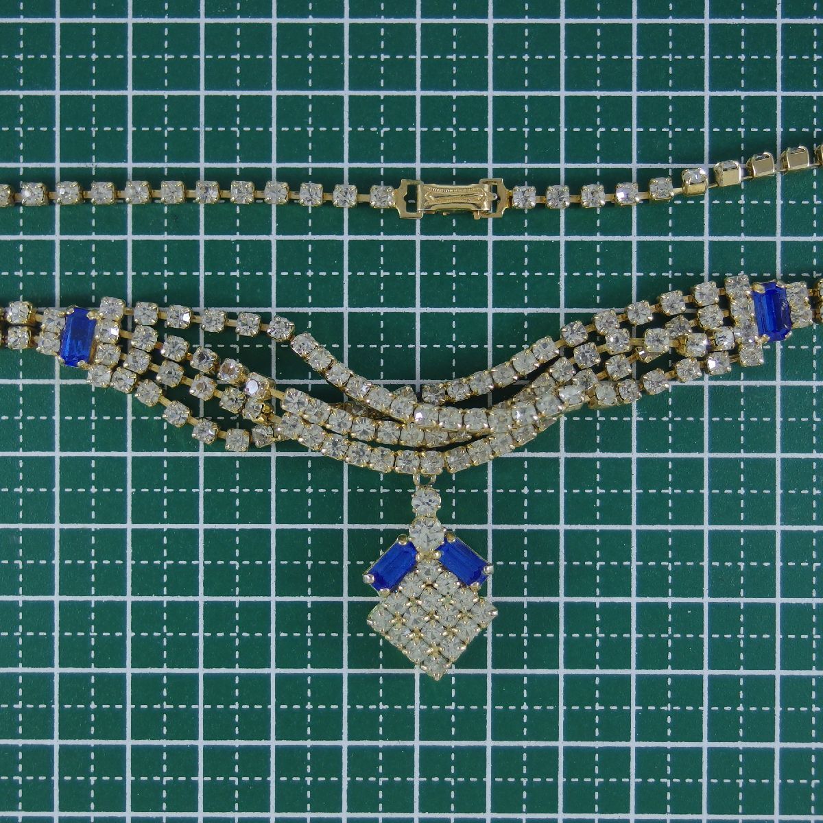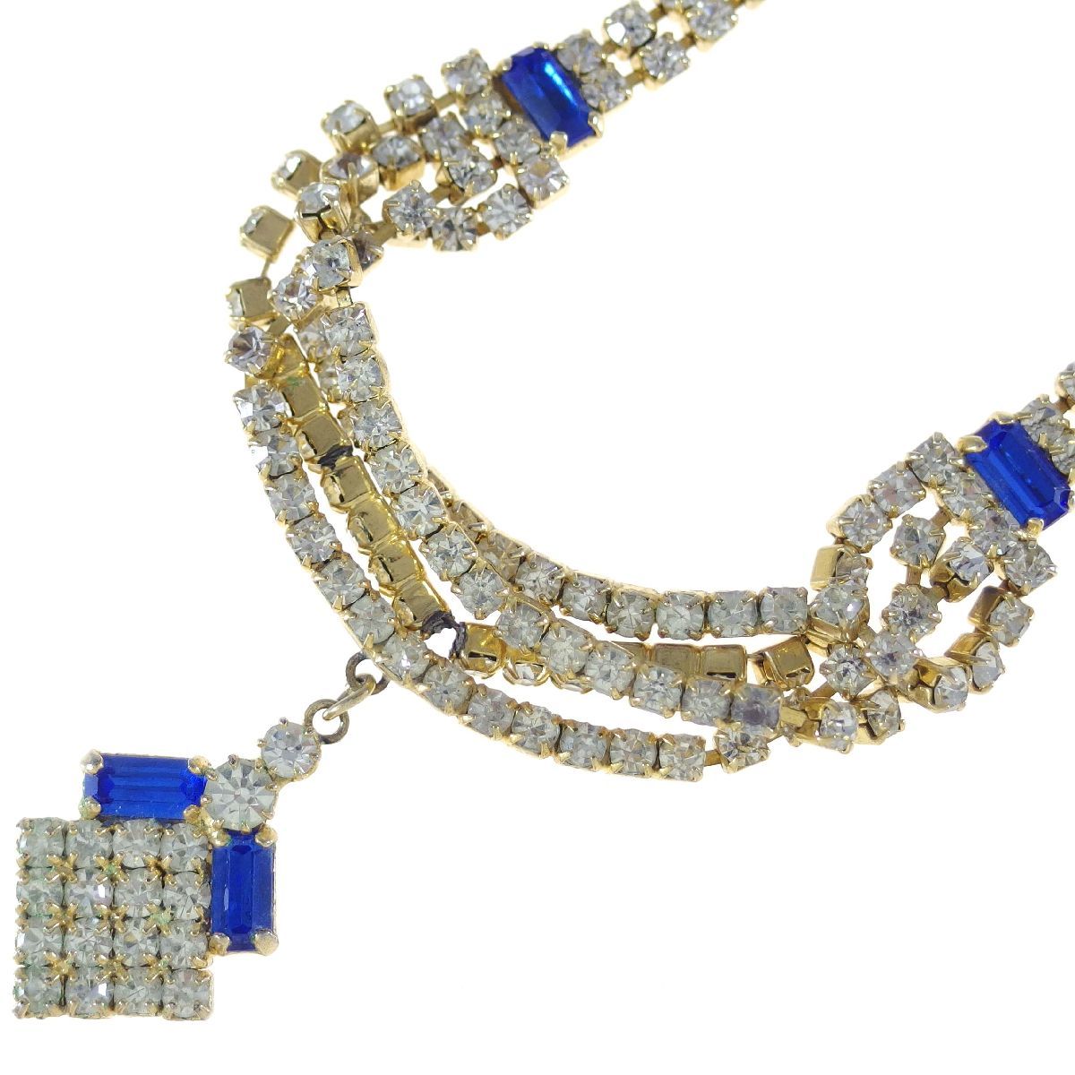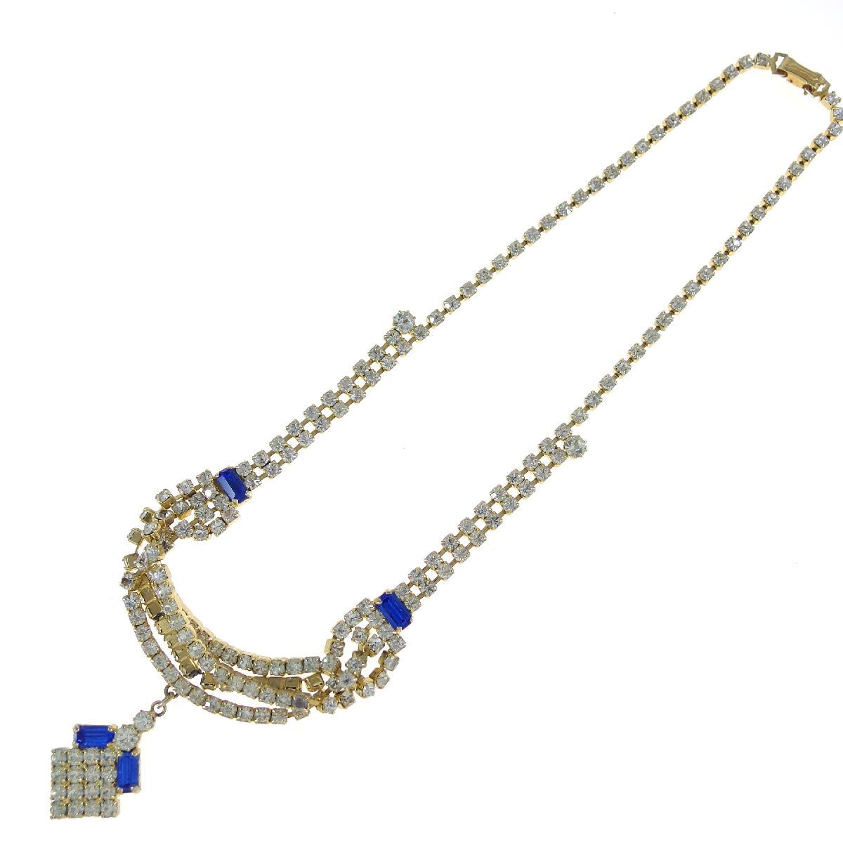 C6436◆【CHECHO SLOVAKIA】◆ チェコ輸入 ブルー&クリアラインストーン ◆ ヴィンテージネックレス ◆ 長さ約43㎝ ◆