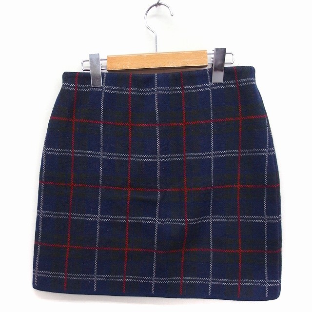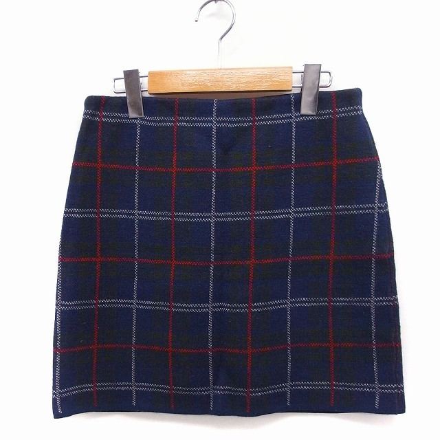 アナザーエディション ANOTHER EDITION アローズ ニット チェック柄 台形スカート ミニ ウール混 ネイビー 紺 /FT17 レディース