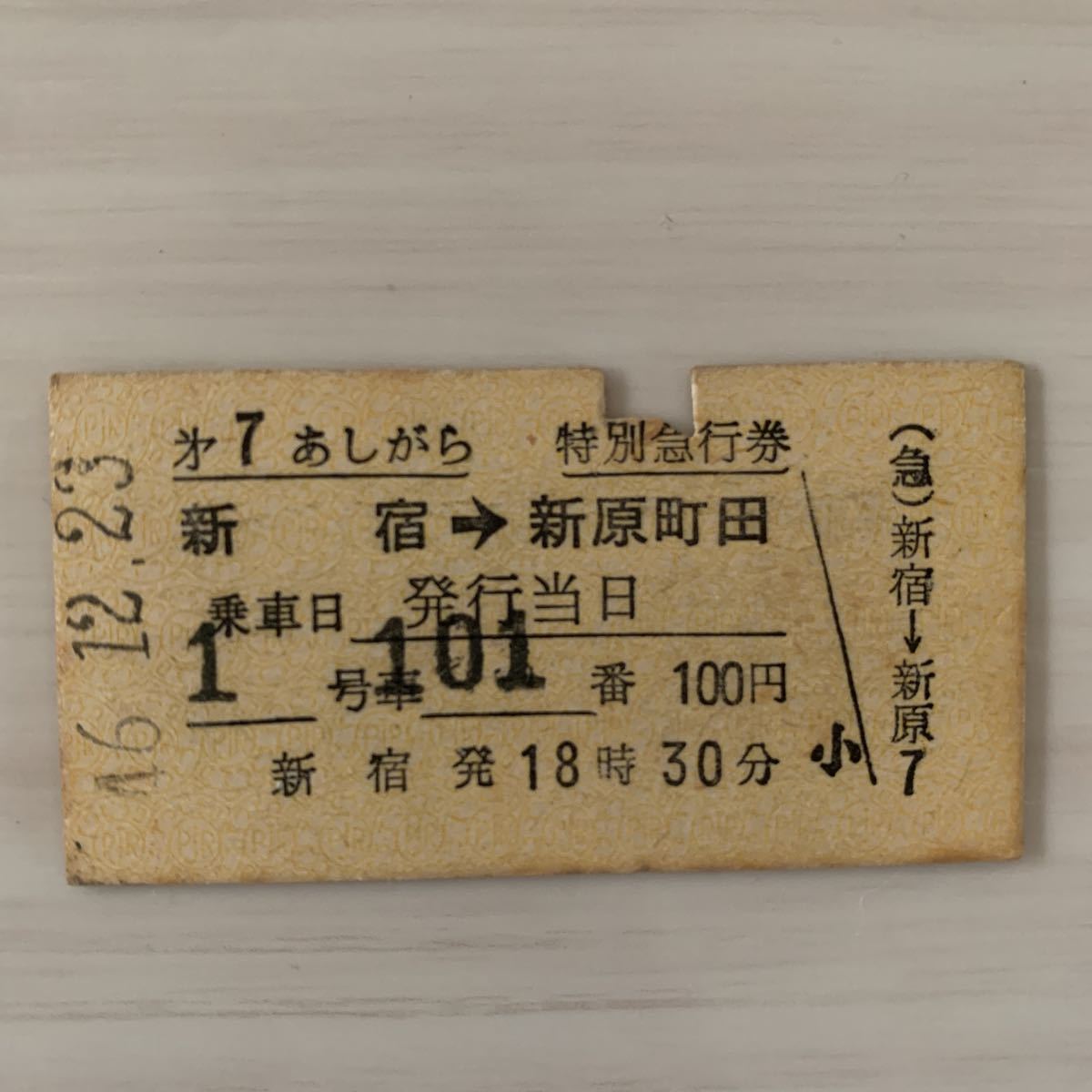こちらは古い切符 小田急電鉄 特別急行券 第7あしがら 新宿 新原町田 昭和46年12月23日 です。
