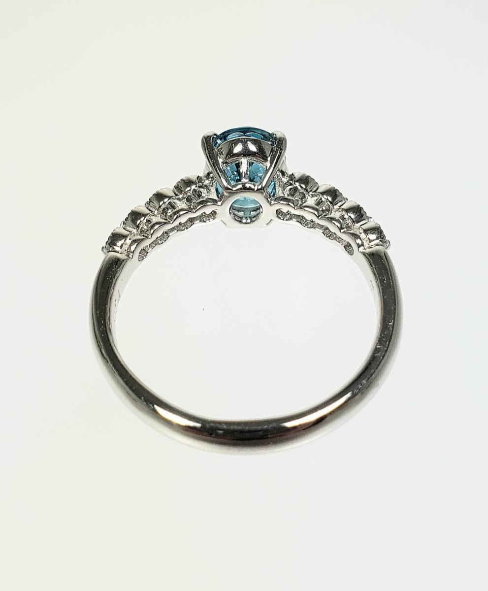 サイドのダイヤをミル打ちシャトンに留めたプラチナ製のフレームで