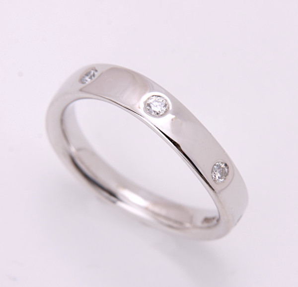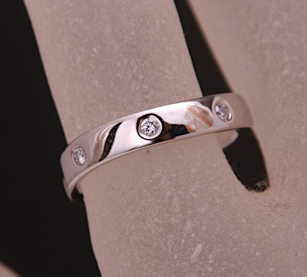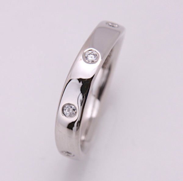 5石のメレダイアが等間隔に留められたデザインリングです。