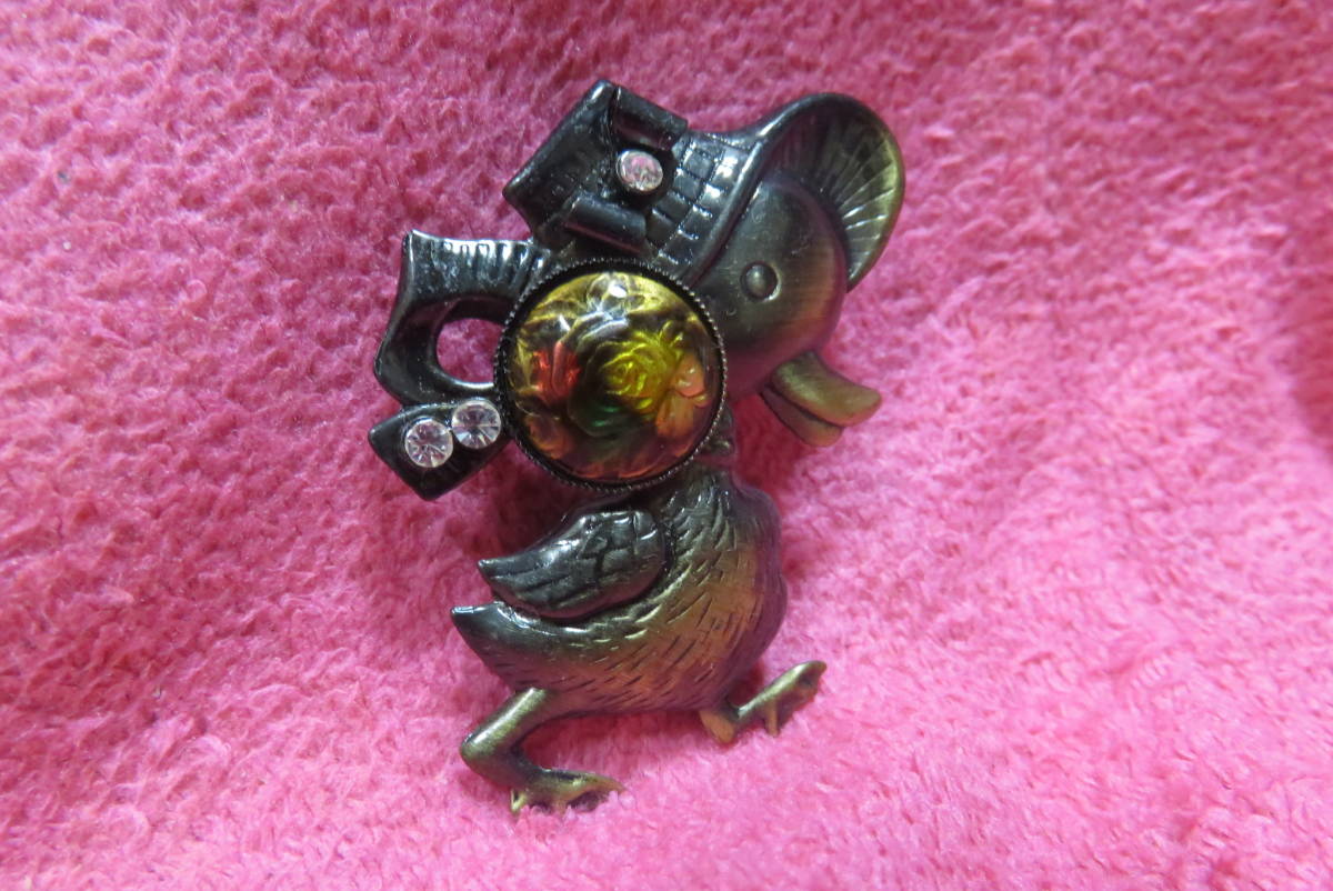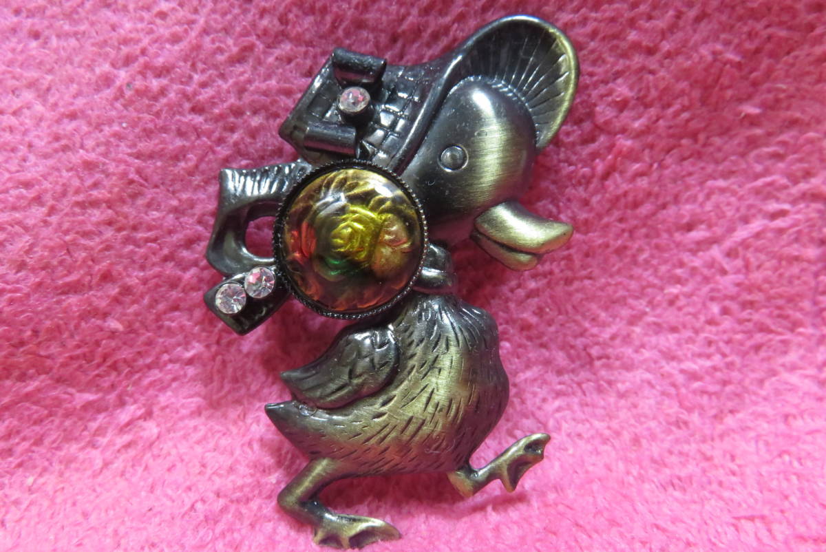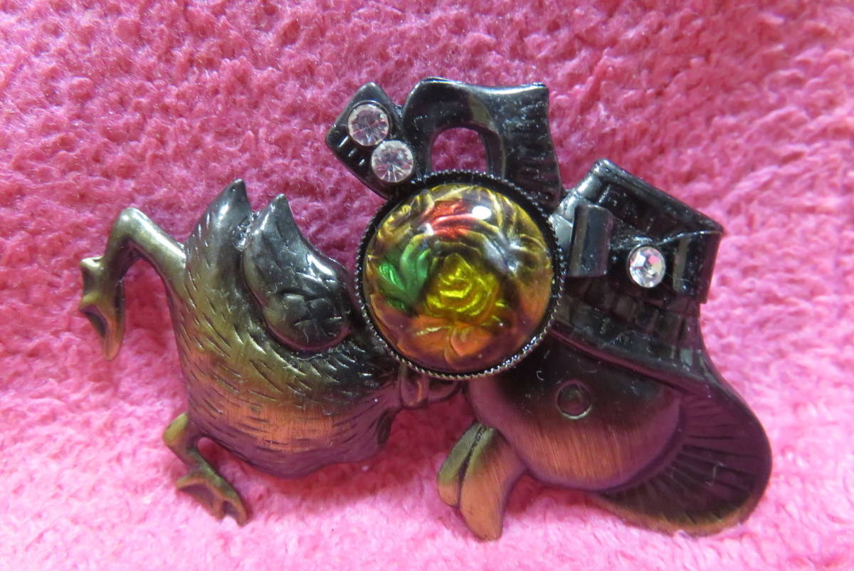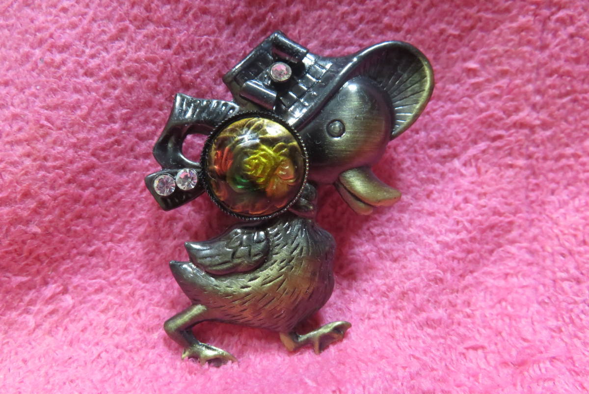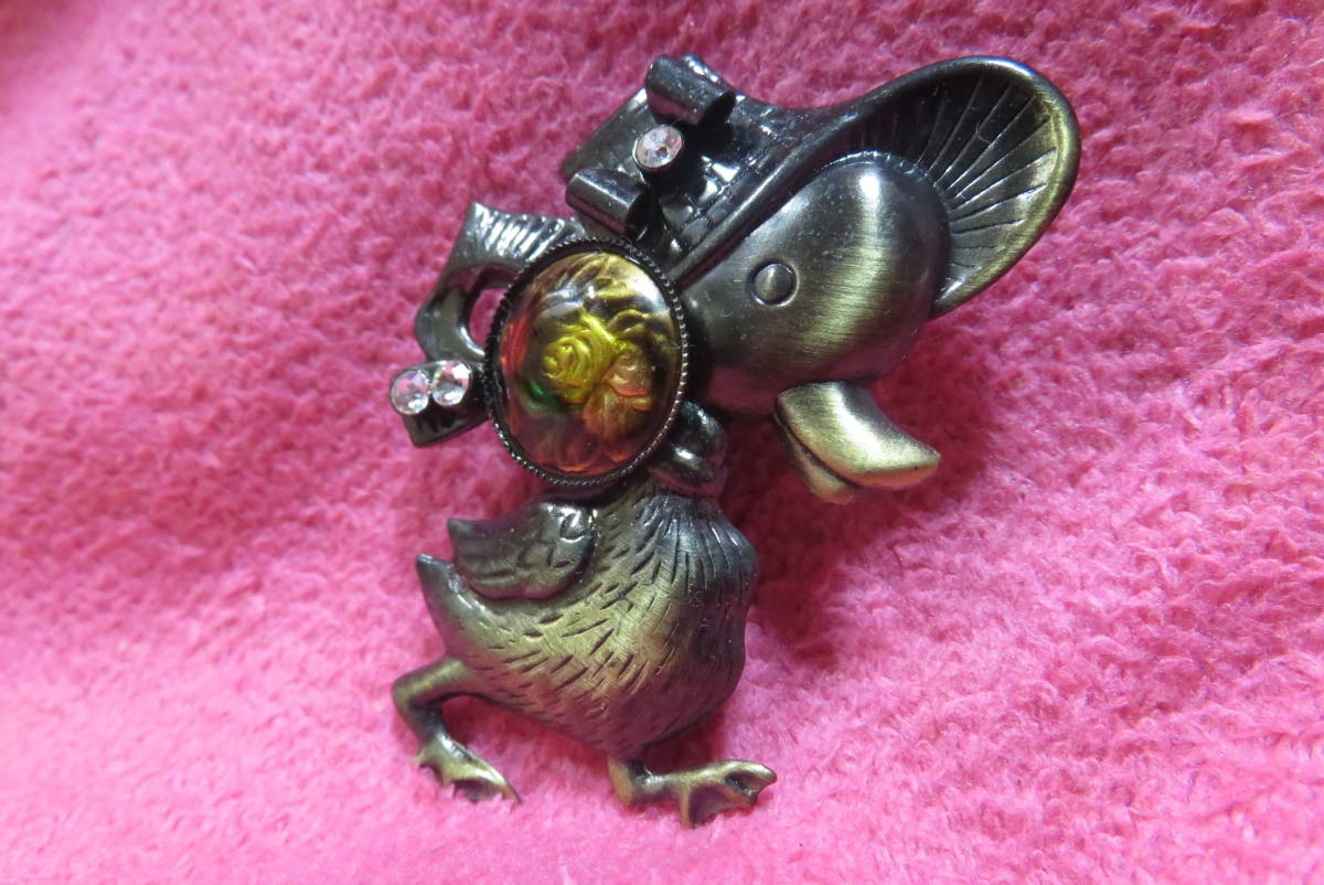 X5416   ブローチ   アンティーク調  ラインストーン  アヒル  薔薇  ばら  ローズ