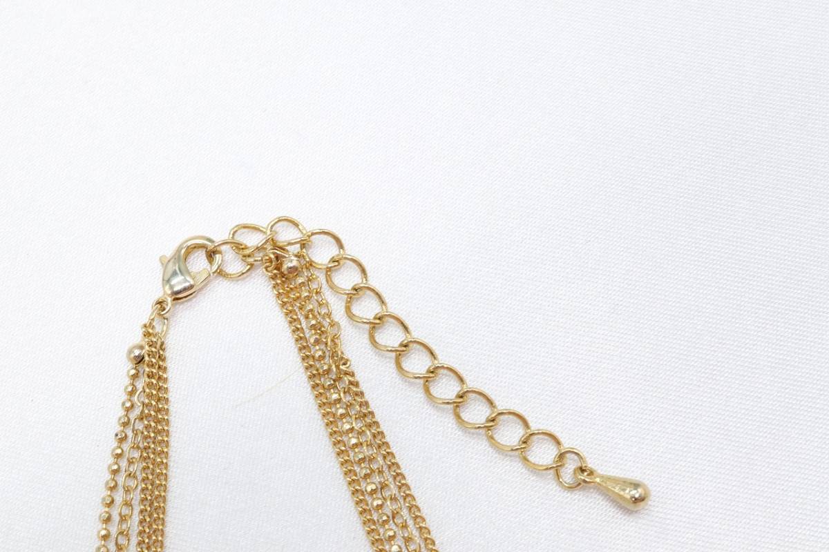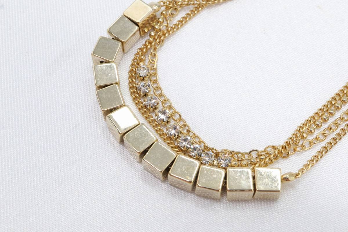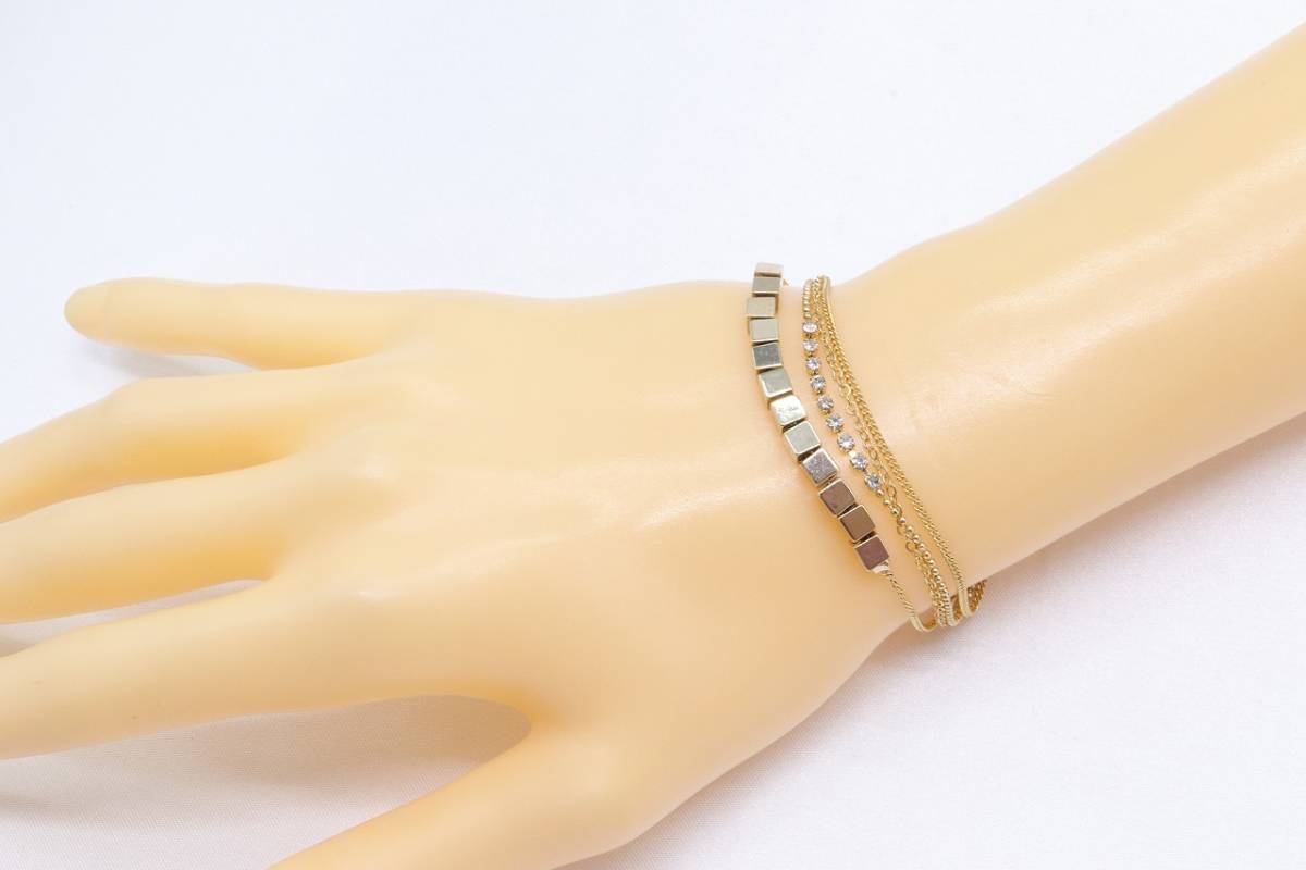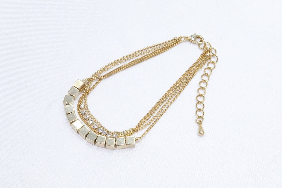 【HU285】スクエア ビジュー モチーフ 4連 チェーン ブレスレット ゴールドカラー 未使用保管品【送料全国一律185円】