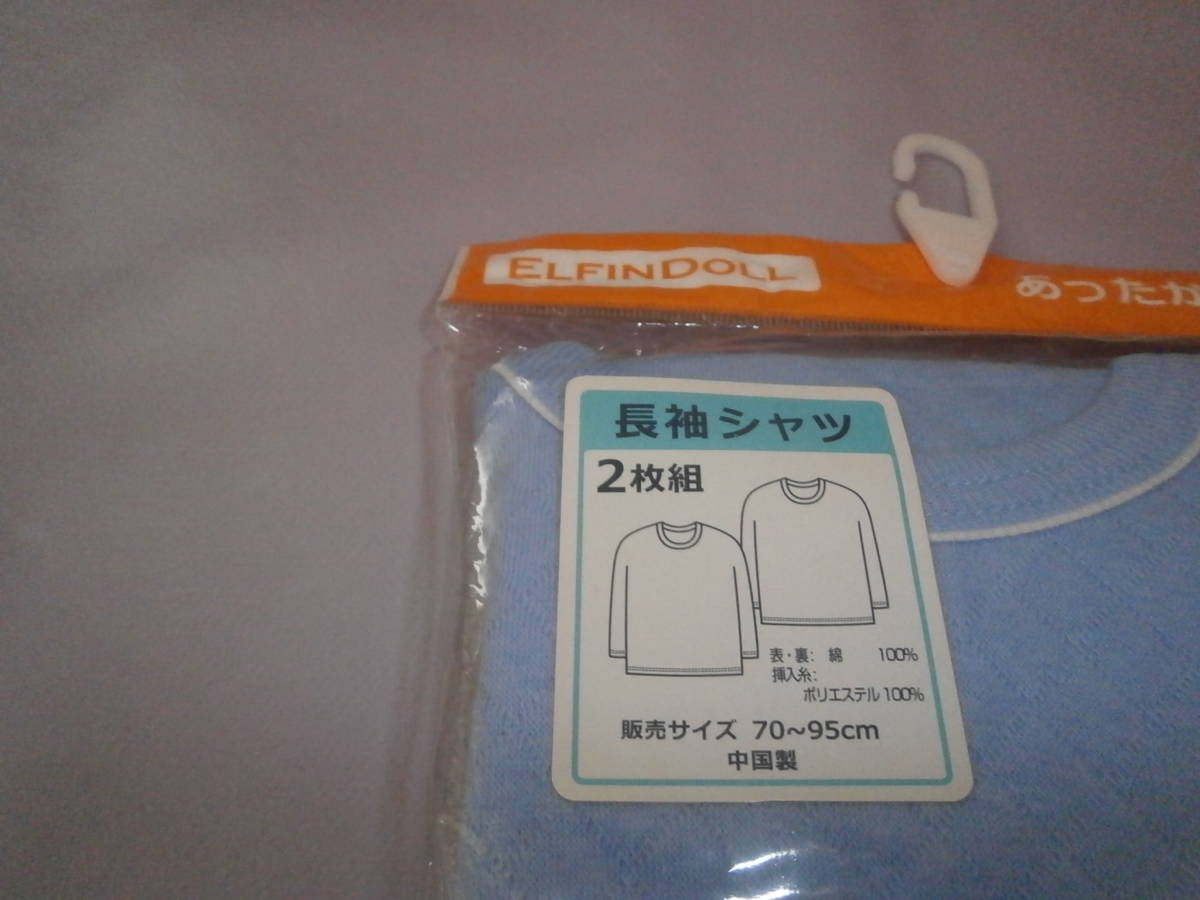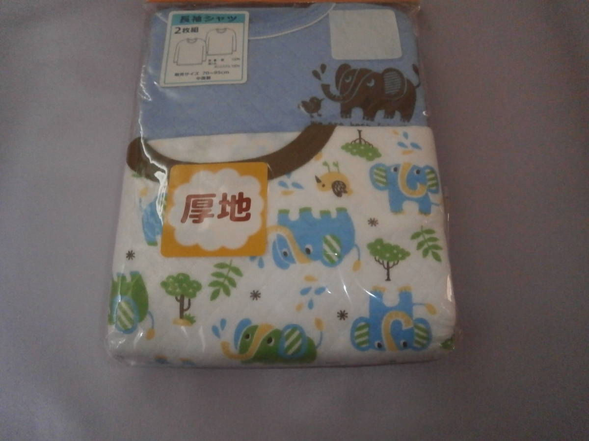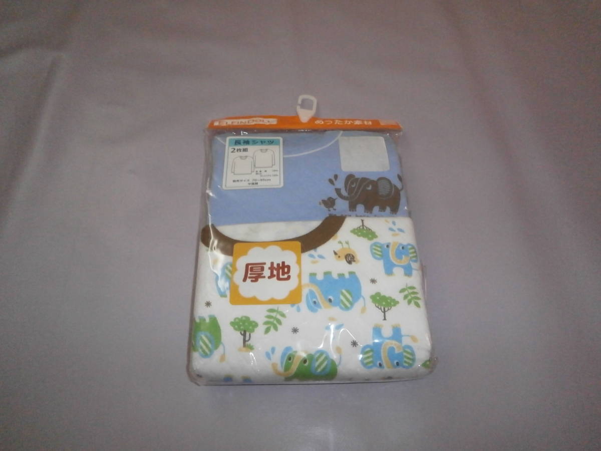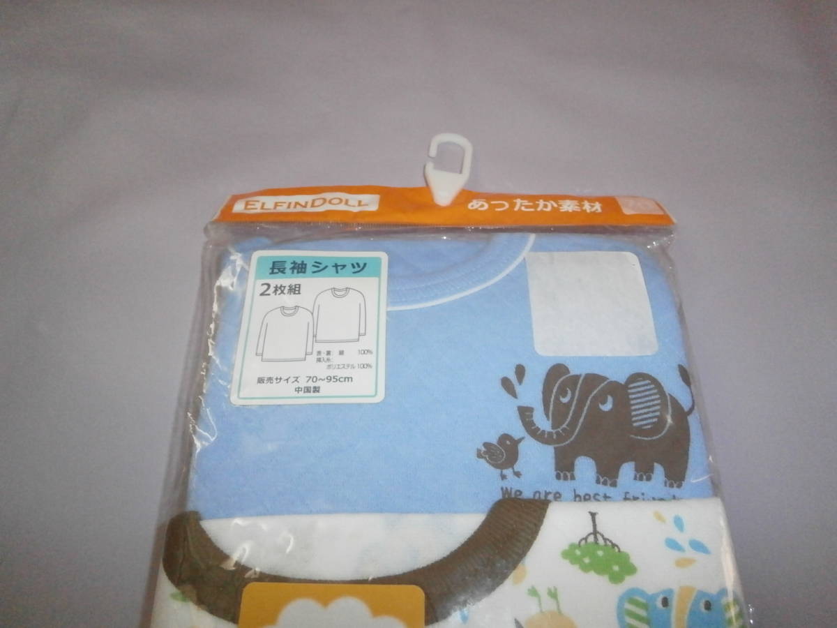 新品★男児男の子★あったか素材★長袖シャツ★2枚組★サイズ70★水色 ぞう 白地 | ||