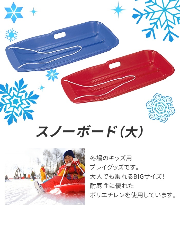 | 冬場のキッズ用プレイグッズです。 大人でも乗れるBIGサイズ! 耐寒性に優れたポリエチレンを使用しています。 |
