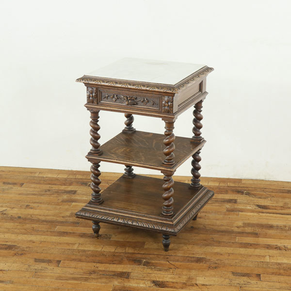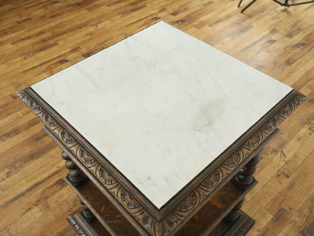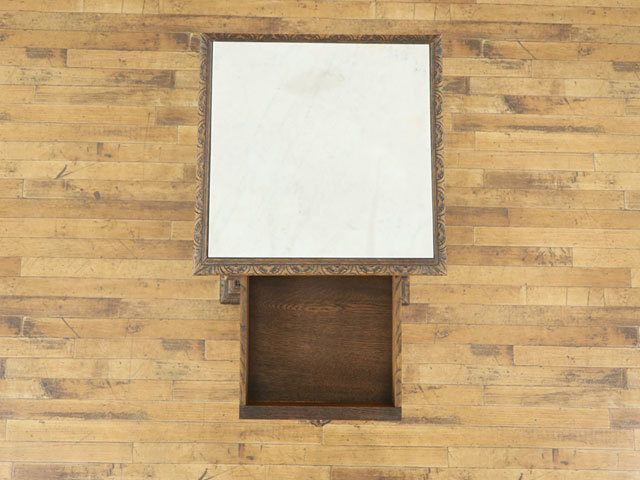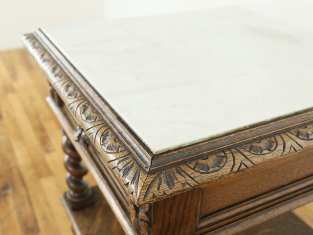 大理石天板 サイドテーブル 美しい彫刻 ツイストの柱 引き出し付き 重厚なデザイン フランスアンティーク家具 64575