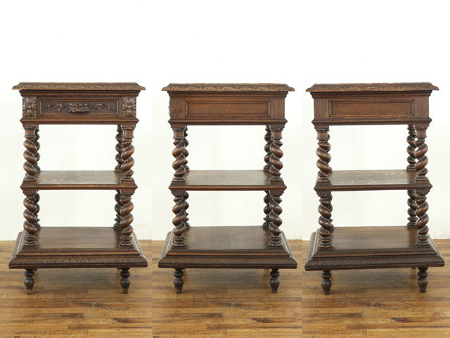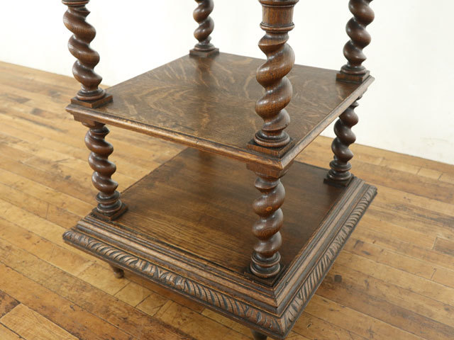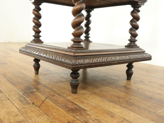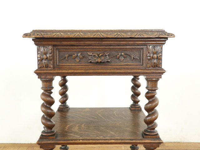 ほど良く配された彫刻とツイストの柱がアンティーク家具らしさを感じさせてくれます。