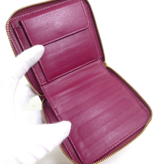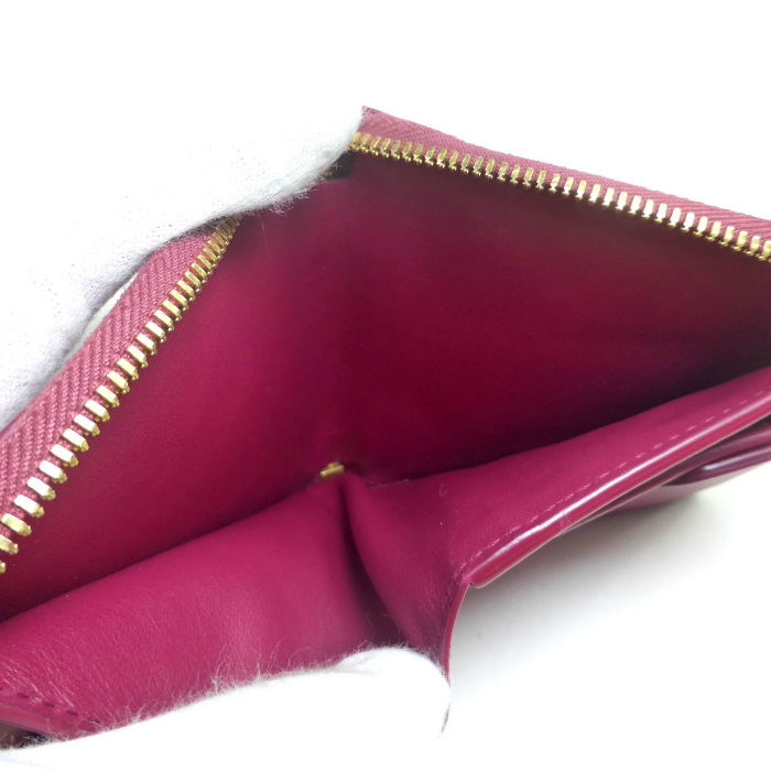 | ボッテガ ヴェネタ(BOTTEGA VENETA) パデッド ペーパーカーフ ジップウォレット コンパクト 二つ折り 財布 591752 アマラント×GO金具(美品)中古 |