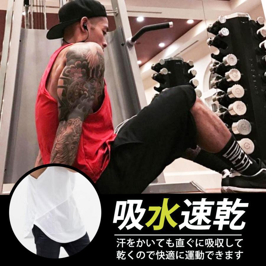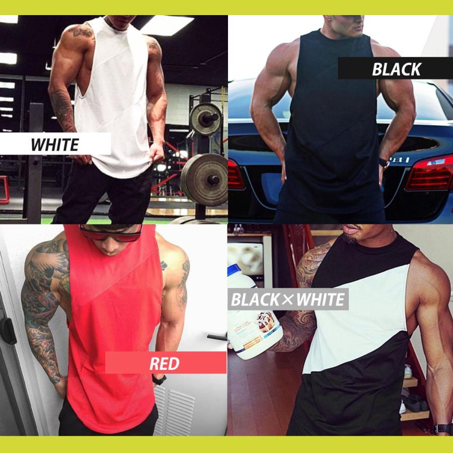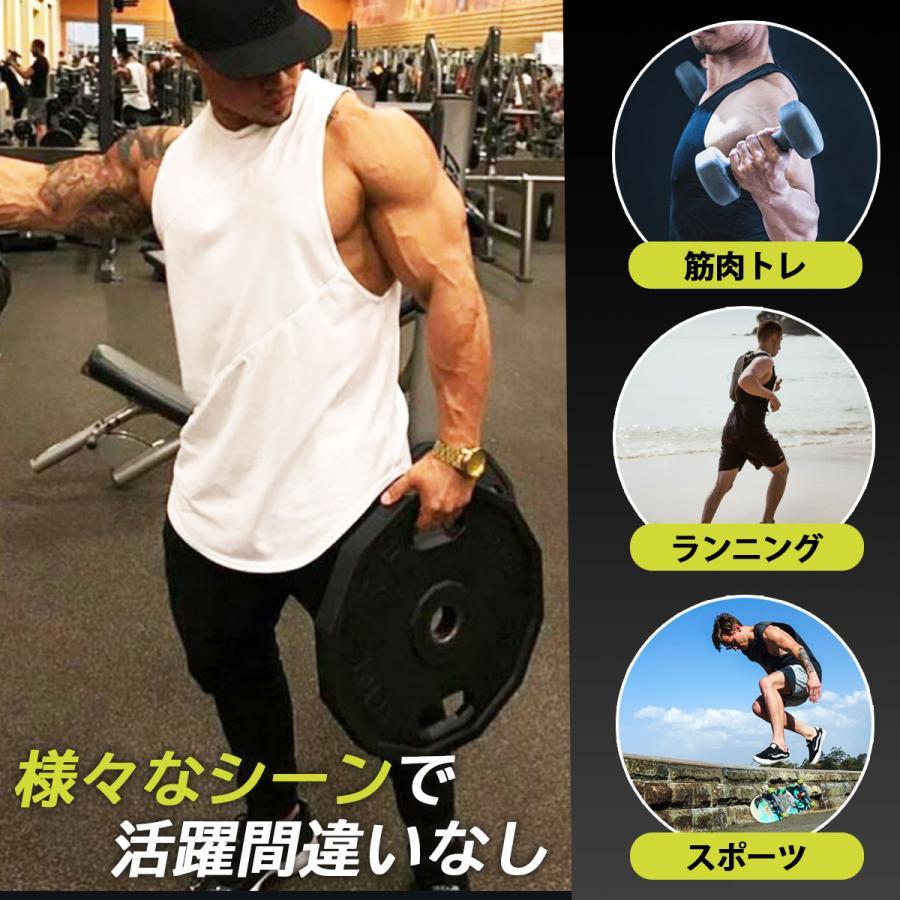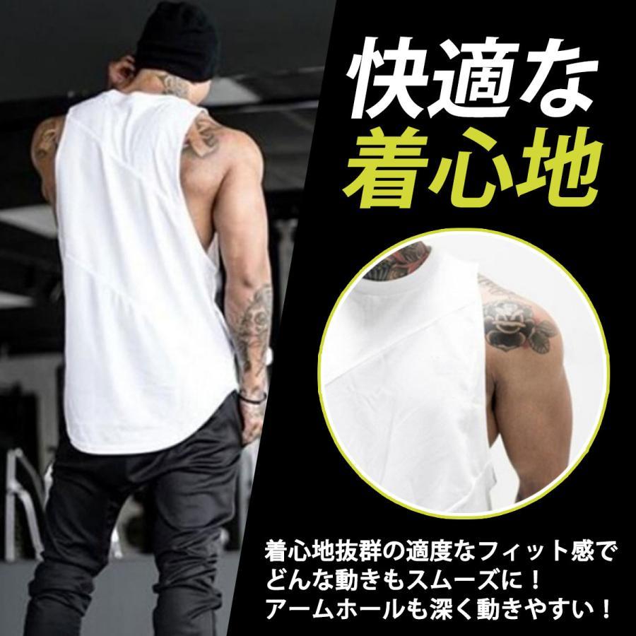 【タンクトップ ブラック L】筋トレ メンズ スポーツ ジム おしゃれ インナー 綿 速乾 トレーニング ウェア 黒 白