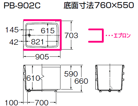 FRP浴槽 ポリエック 900サイズ 和風タイプ 3方全エプロン