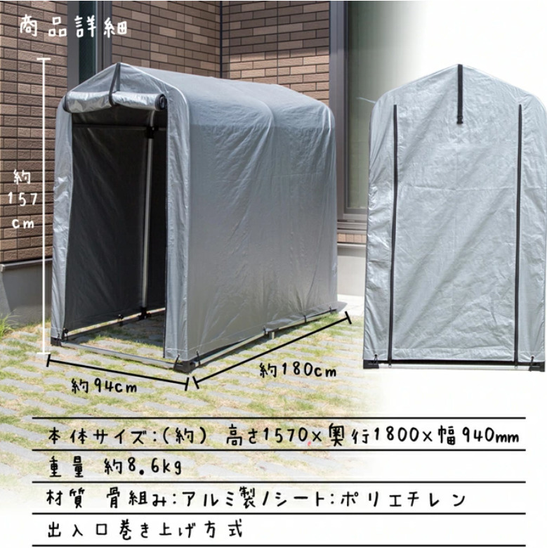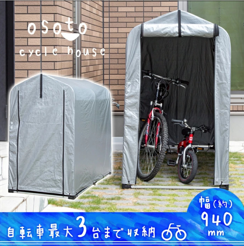 自転車は最大3台まで収納。防水+UVカットで守ります。
