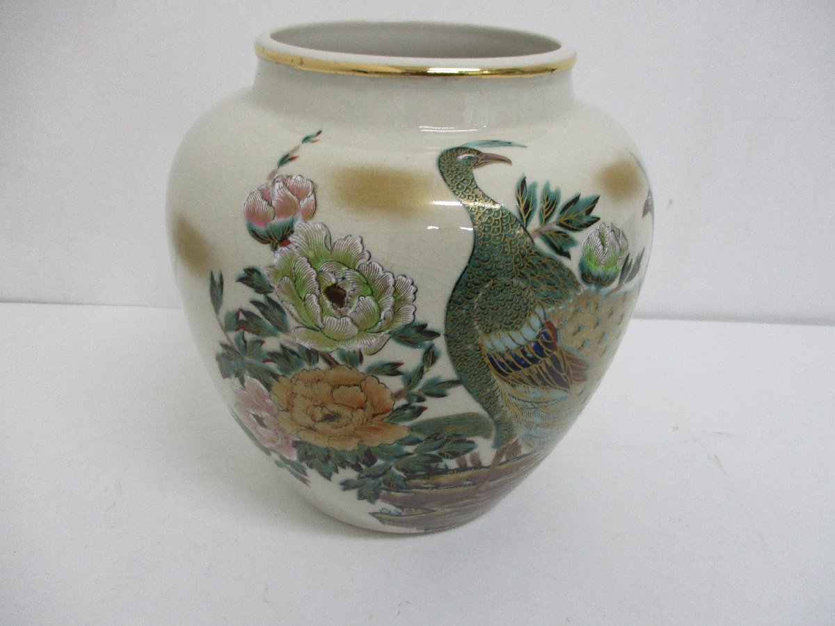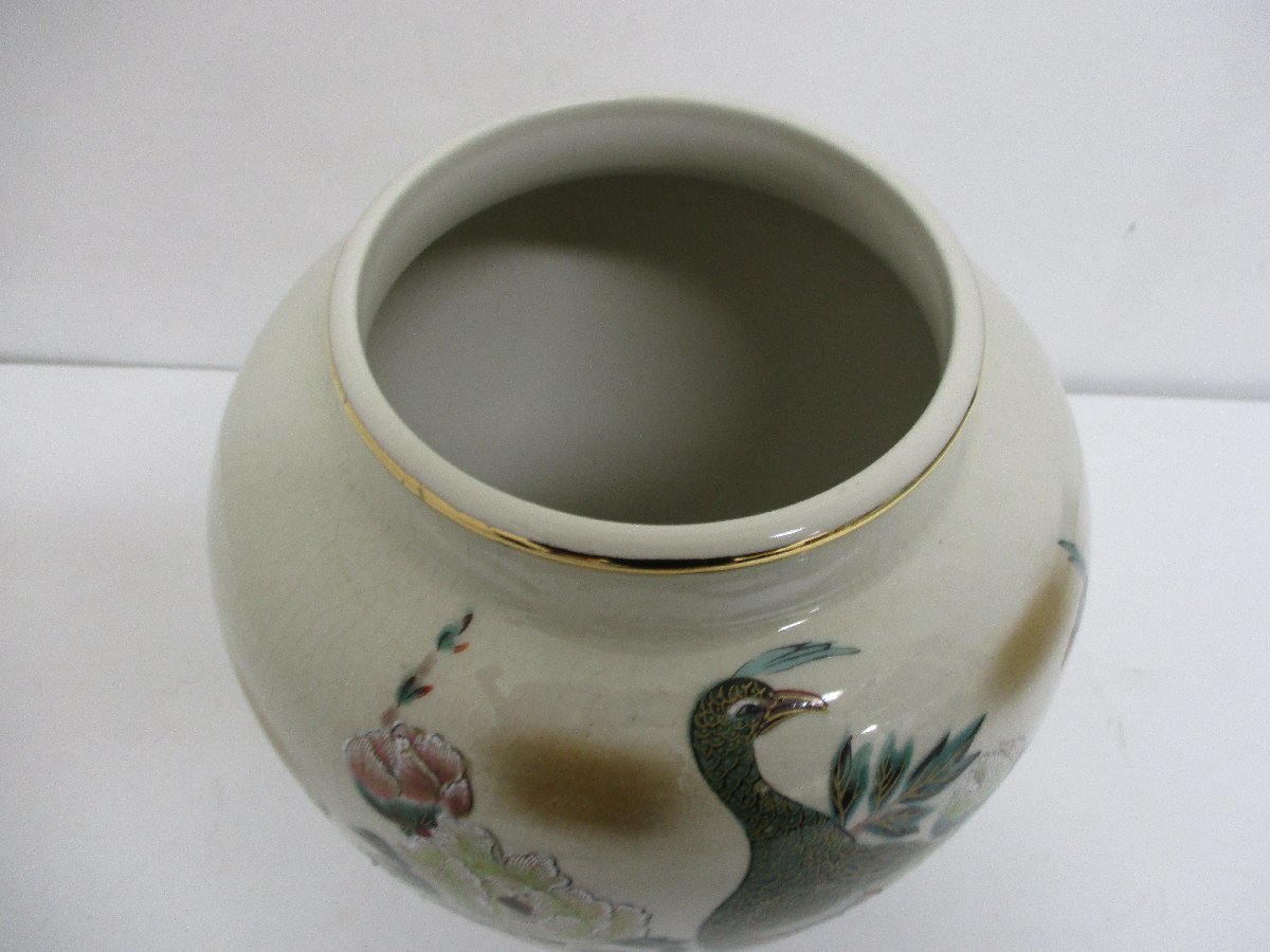 九谷焼 壺 花瓶 クジャク 孔雀 高さ21センチ
