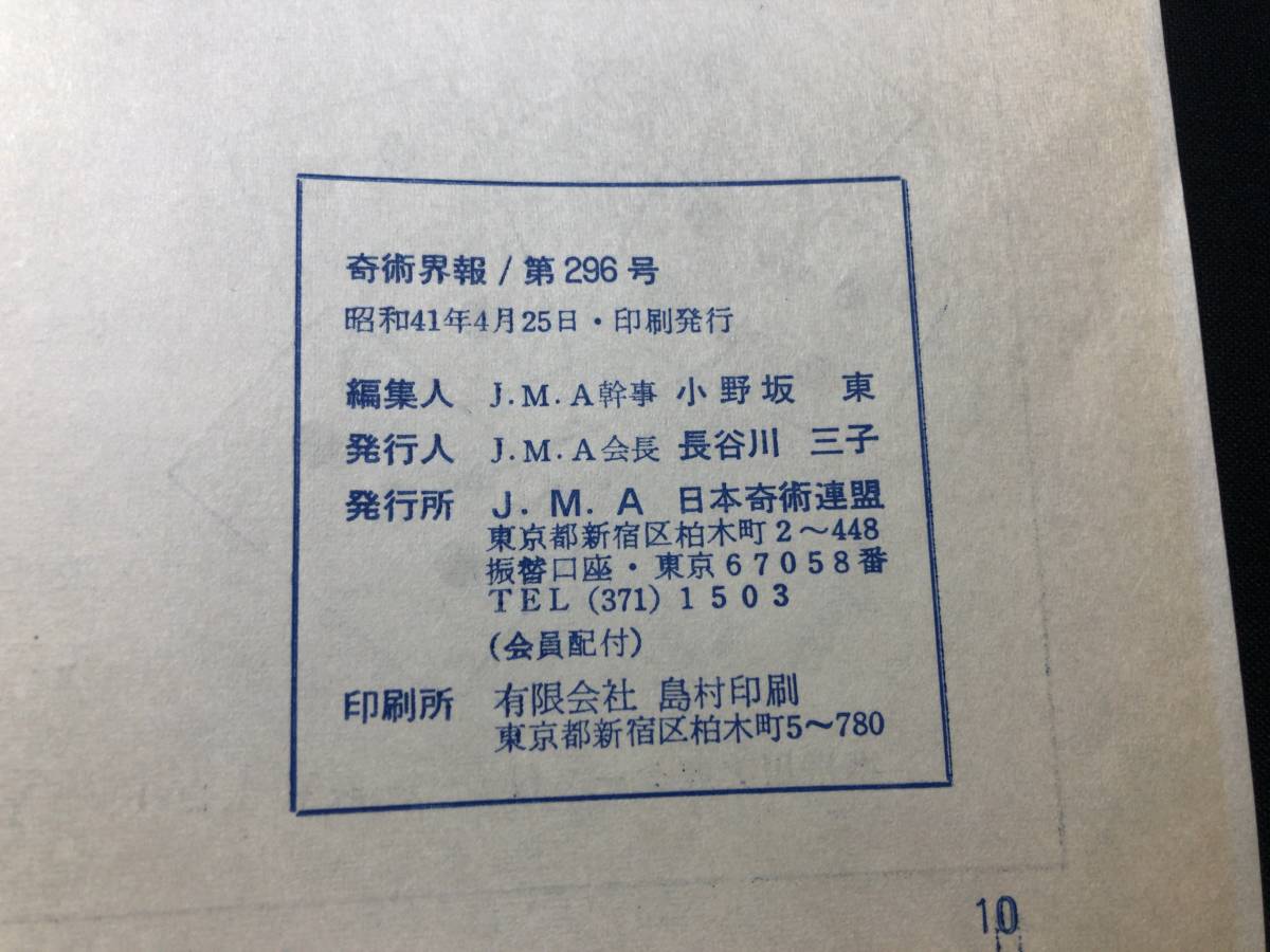【奇術界報116】『296号 昭和41年4月』●長谷川三子●全11P●検)手品/マジック/コイン/トランプ/シルク/解説書/JMA