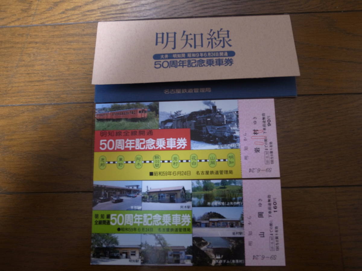 | ■明知線/全線開通50周年記念乗車券 ■昭和59年 ■名古屋鉄道管理局 | ||