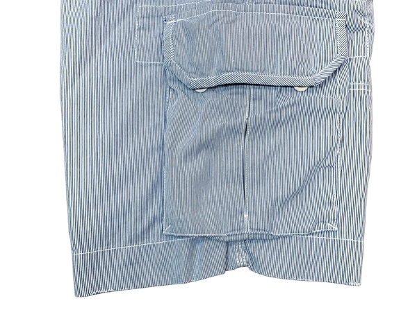 こちらはオーセンティックなデザインのカーゴショーツにカジュアルなストライプ柄が落とし込まれ、裾やポケット口付近にはビンテージ感のあるユーズド加工が施されきめ細やかなステッチワークで仕上げられることで、ベーシックで上質な逸品に仕上がっております。