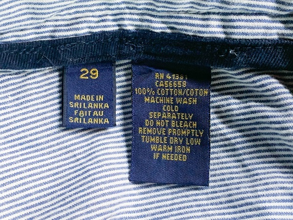 POLO RALPH LAUREN(ポロ ラルフローレン)のストライプカーゴショーツ、MADE IN SRI LANKA(スリランカ製)。