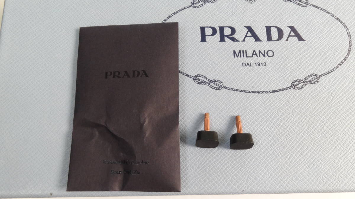 ・色・柄:水色。PRADAロゴ付き。画像では少し暗い感じの水色に見えますが、もう少し明るい空色のような感じです。