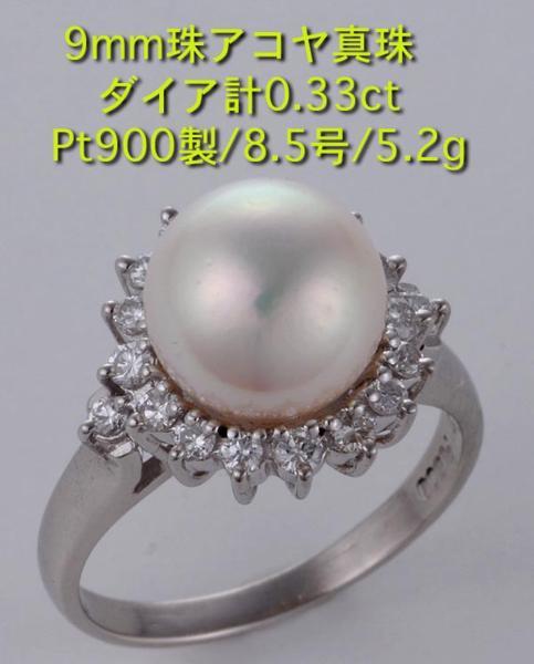 コメント | [[全ての商品に品質保証カードが付きますのでご安心ください]] 9ミリ珠の純白系アコヤ真珠です。決して大きな珠ではありませんが、照り、艶のある上質なアコヤ真珠です。脇石のダイアも透明感と輝きがあります。とても高品質なリングです。 |