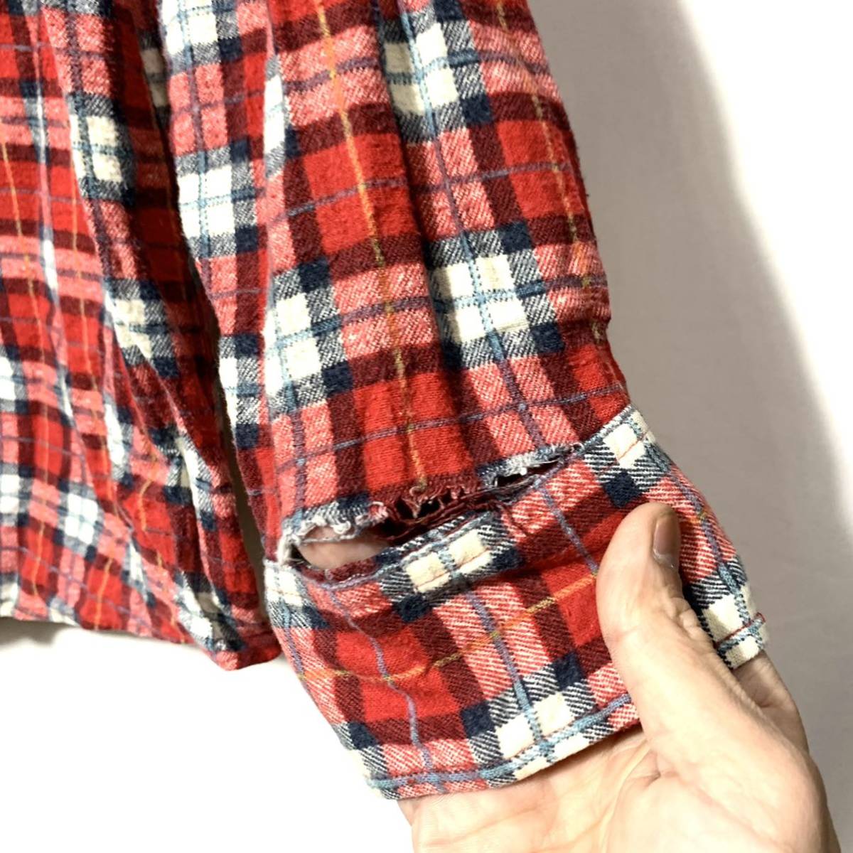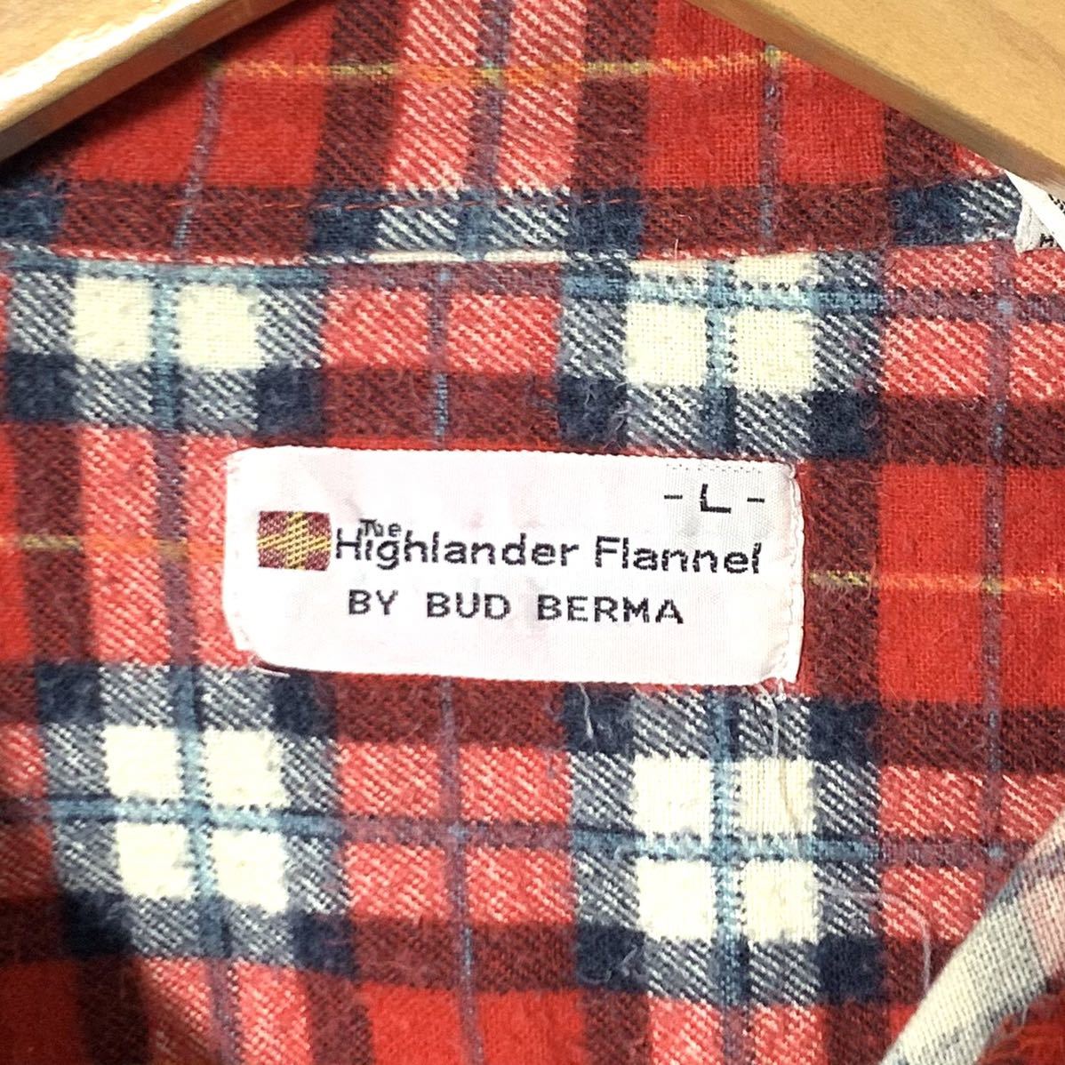 ■ ジョニオ着 Highlander Flannel ハイランダーフランネル チェック柄 プリント 長袖 ネルシャツ 古着 アメカジ レッド × ホワイト L ■