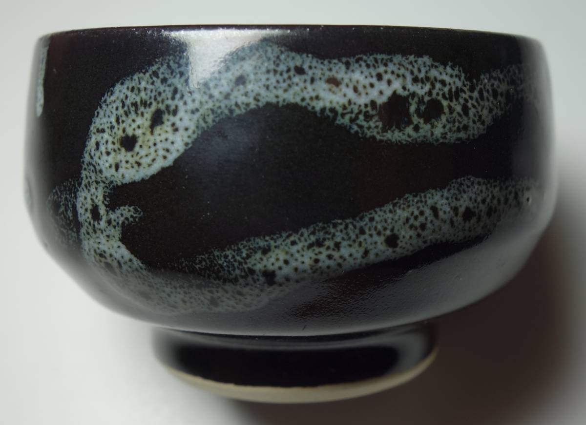 手造り 黒天目釉 ウツボ(Moray eel)紋釉 高級煎茶碗 作家物