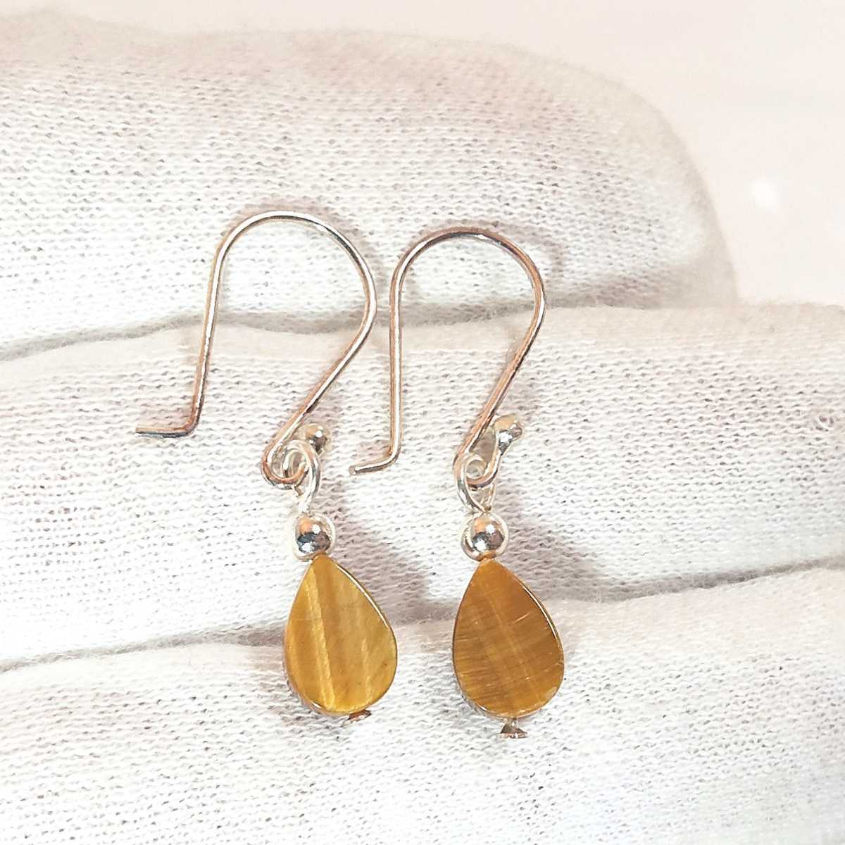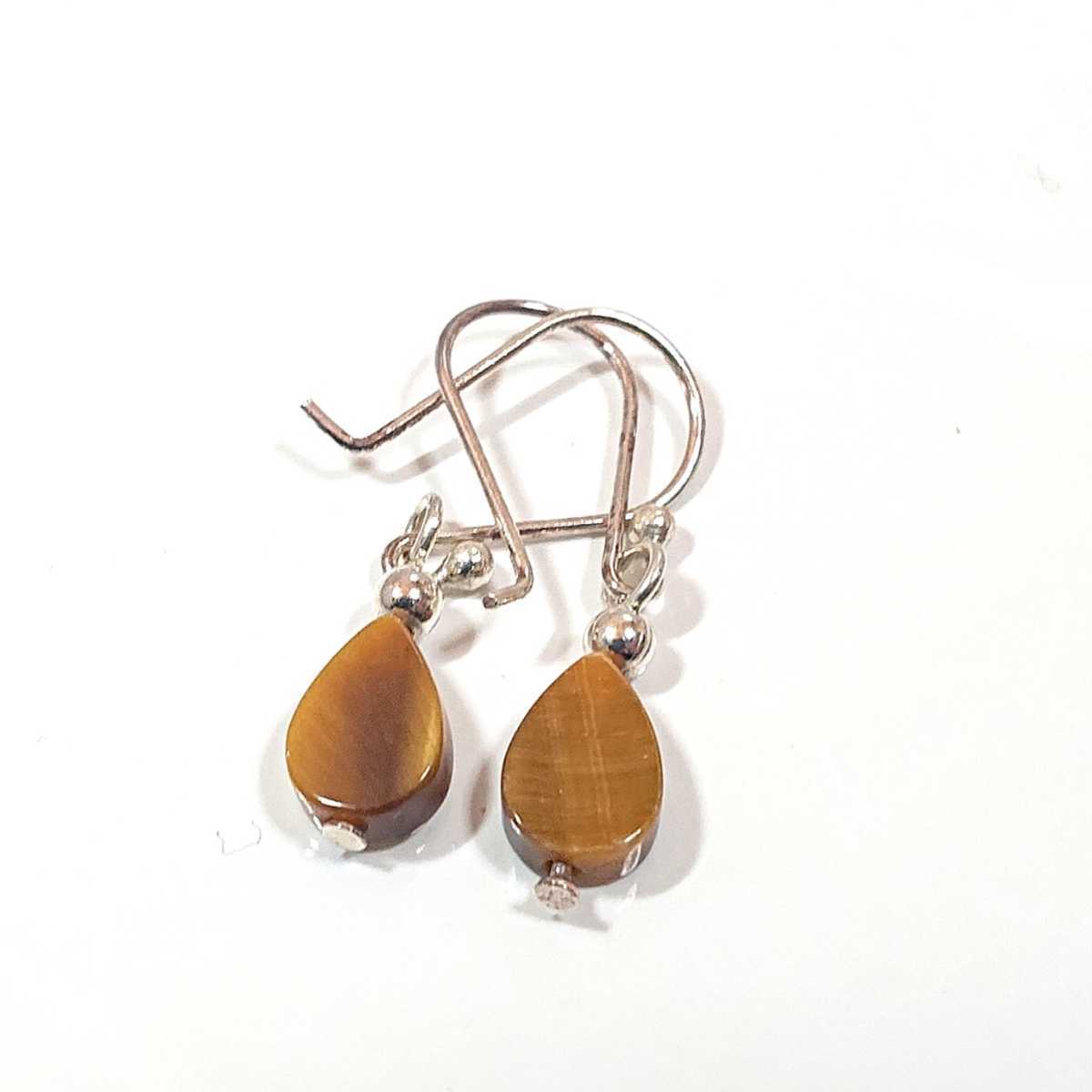 小さなティアドロップの型をしたタイガーアイのピアス☆