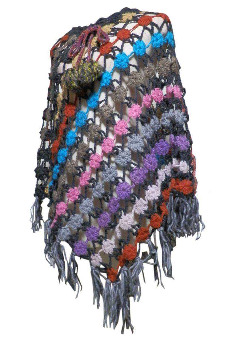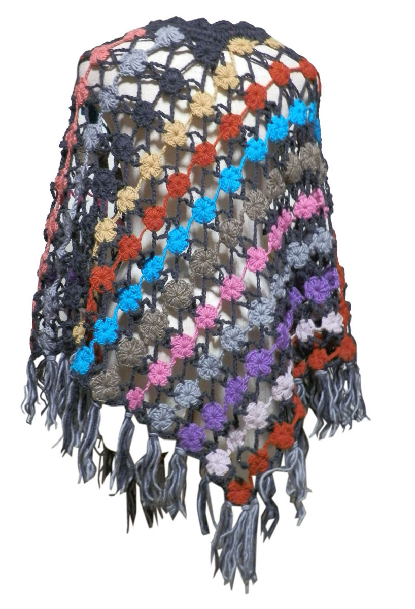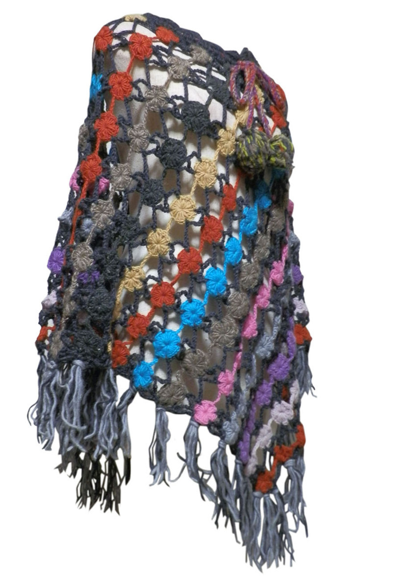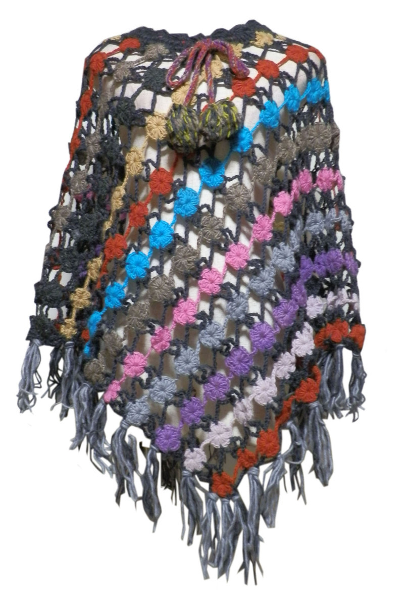 ■☆アジアン衣料 ネパール手編みモチーフポンチョ(NEP-48)