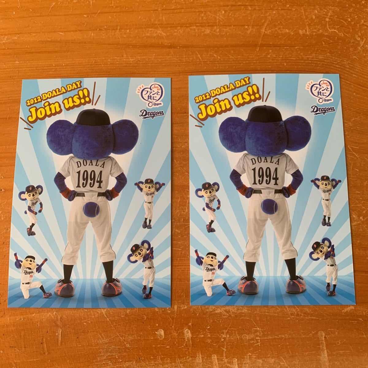 ドラゴンズ ポストカード ドアラ 2012 DOALA DAY Join us!! ファンと共に Dragons Post Card 2枚有り 非売品 新品 未使用 送料無料 の出品です。 1枚の価格です。2枚必要な人は個数2入れ落札願います。 納戸の整理(断捨離)で今後使用予定が ない為出品しました。 衣装ケースに入れて保管してました。