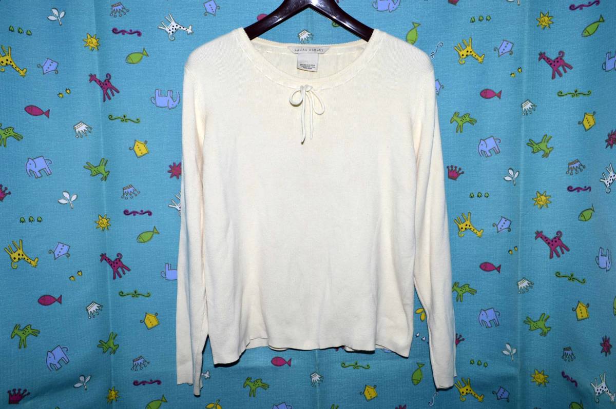 ☆商品名: LAURA ASHLEY ローラアシュレイ・リボン リブ プルオーバー サイズ:M(中古)☆