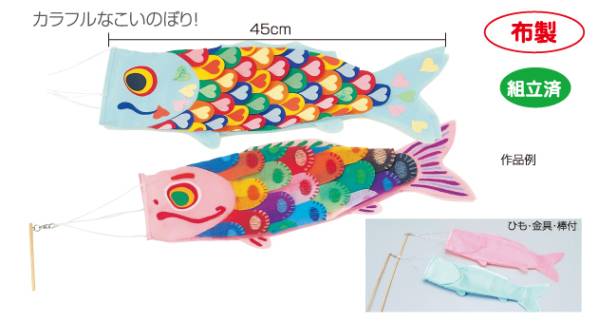 組立済のカラフルなこいのぼり!色紙を貼りつけたり、絵を描いたりしてオリジナルのこいのぼりができます。