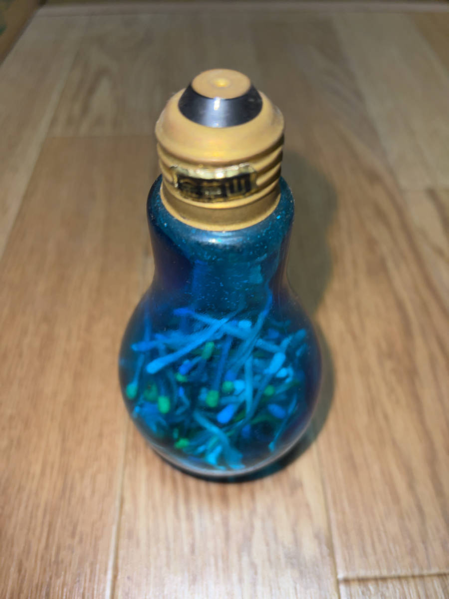 商品説明 | - こちらの品は、使用済みの品となります。 現状渡しとなりますので、画像と商品説明をご確認の上で、ご検討下さい。 ※ いかなる場合でも、返品、交換、クレーム等は受け付けません。 商品は、画像の品のみとなります。(元箱や付属品はありません) サイズは、大雑把な計測ではございますが、 直径=約7cm、高さ=約14cm程度です。(点灯はしませんので、ご了承下さい) 状態は、経年程度の中古品で、電球の中身を抜いて作られている為、点灯はしません。 外観的には、多少の傷、擦れ、汚れ等はありますので、 あくまでも、一度は人が手にした中古品という事で、予め、ご了承下さい。 この品は、とりあえず使えれば、特に問題ないという方向けで、 新品、美品、程度良好品などを、お探しの方にはお勧めしません。 ----------------------------------------------------------------- 当方では、環境保護の為、リサイクル資材による簡易梱包での出荷となります。 (ダンボール、空き箱、新聞紙、冊子紙、ビニール袋、レジ袋等の再利用) - |