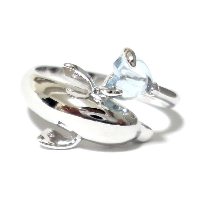 9号 ドルフィン イルカ ブルートパーズ ハート SILVER925 シルバー リング 指輪 レディース