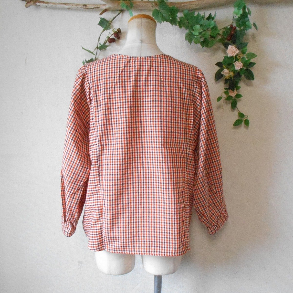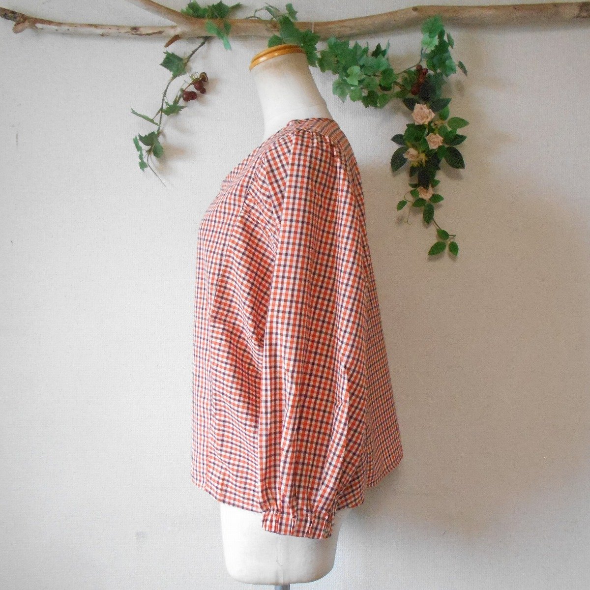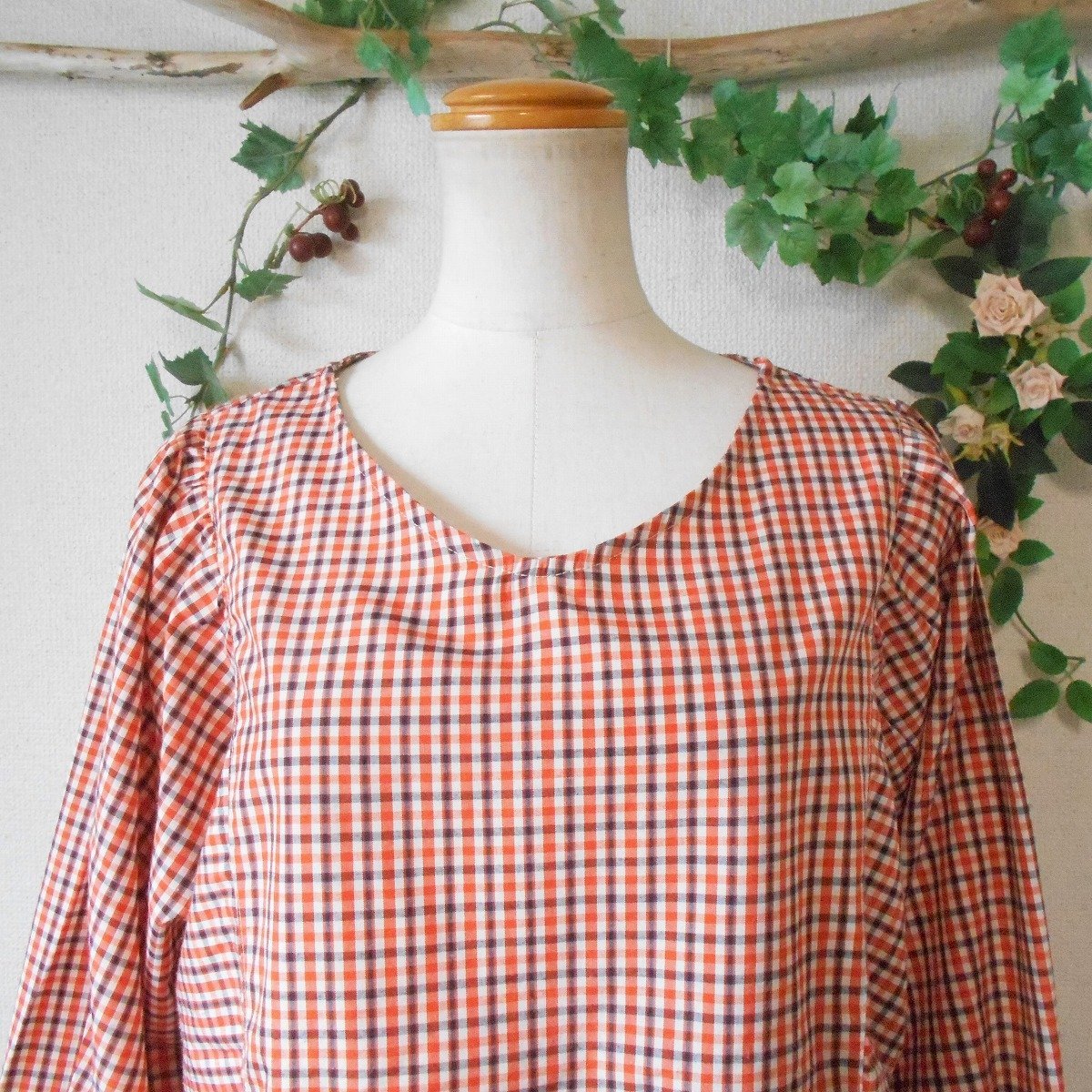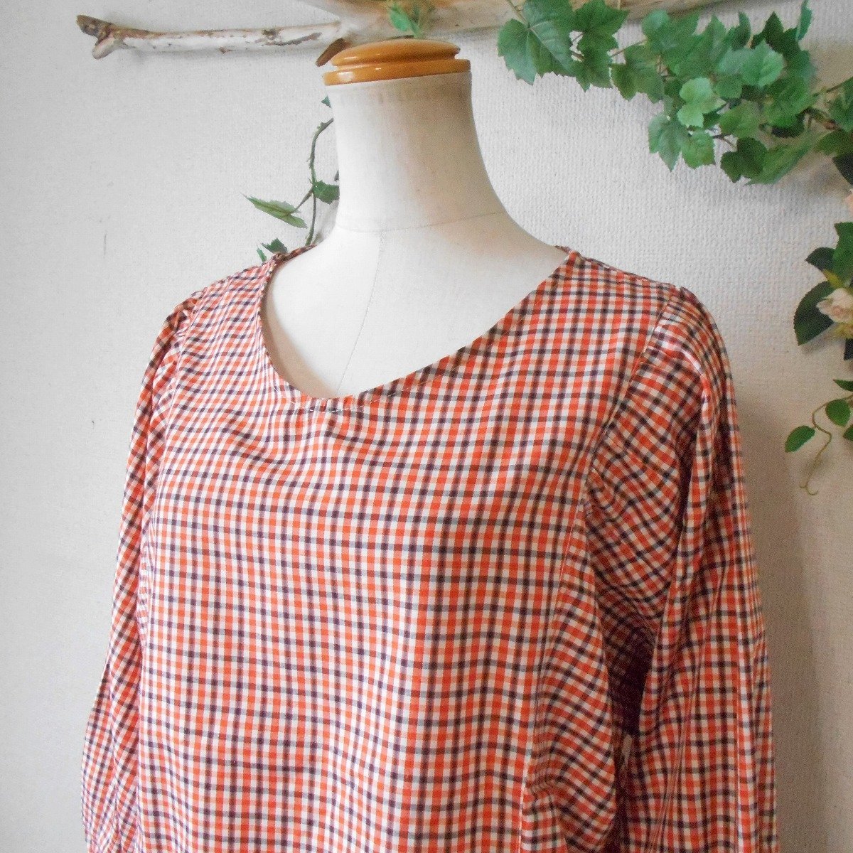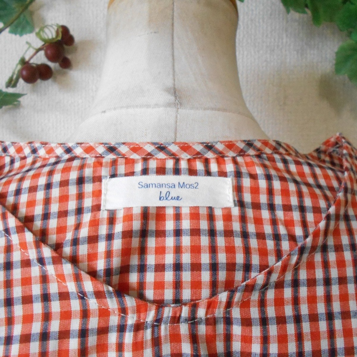 【ポイント】サマンサモスモスブルーのレディース用ブラウスになります。お色はオレンジを中心にした多色使用のチェック柄で春夏を中心に着ていただけるお品です。身幅の広いデザインでとっても素敵な一着です。