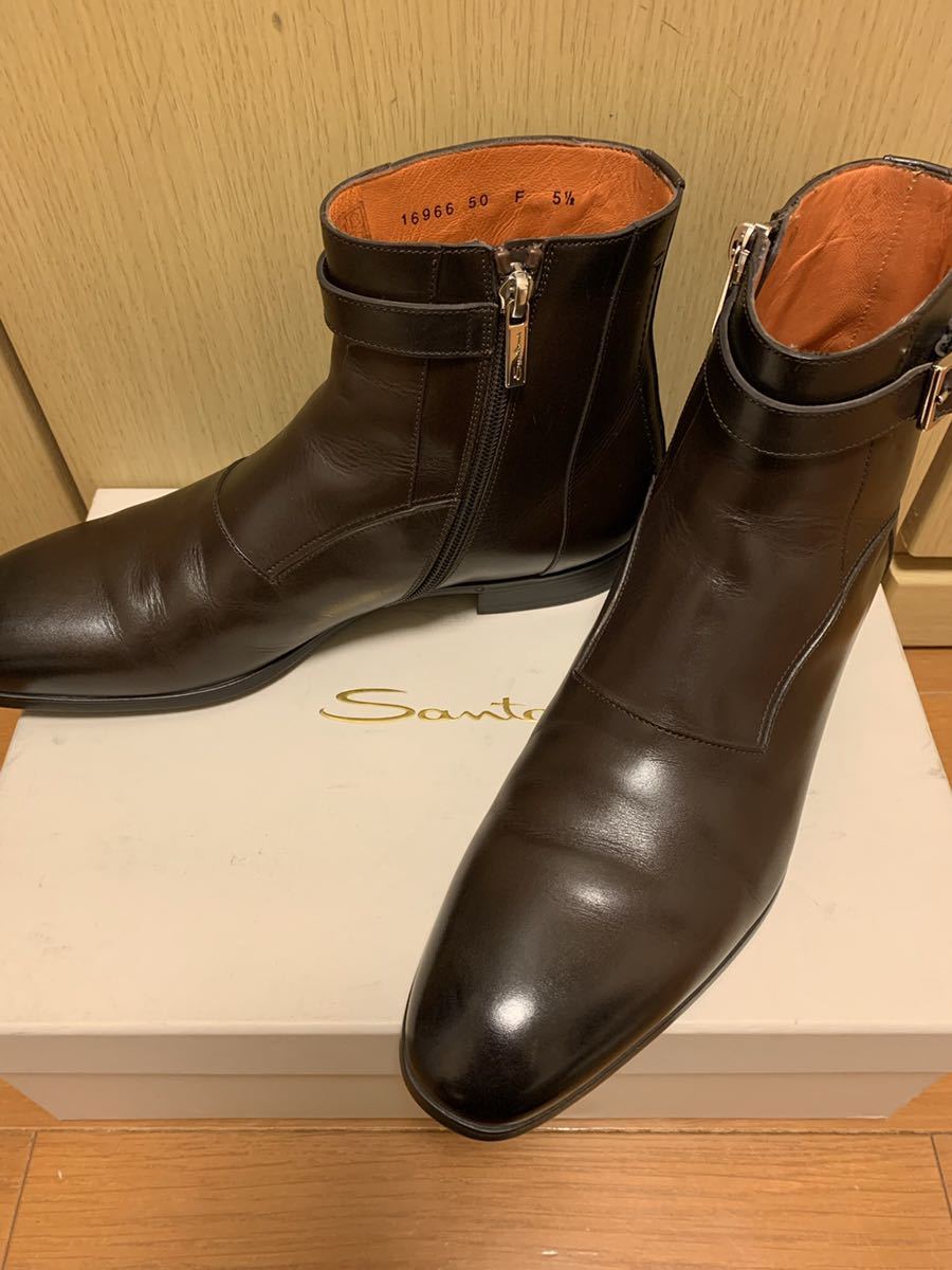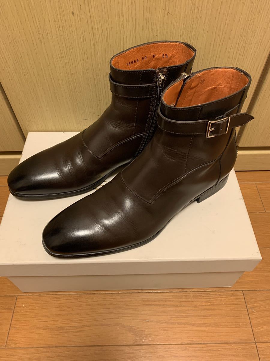 正規 SANTONI サントーニ プレーントゥ モンクストラップ サイドジップ レザー ショートブーツ ドレスシューズ 濃茶 5 1/2