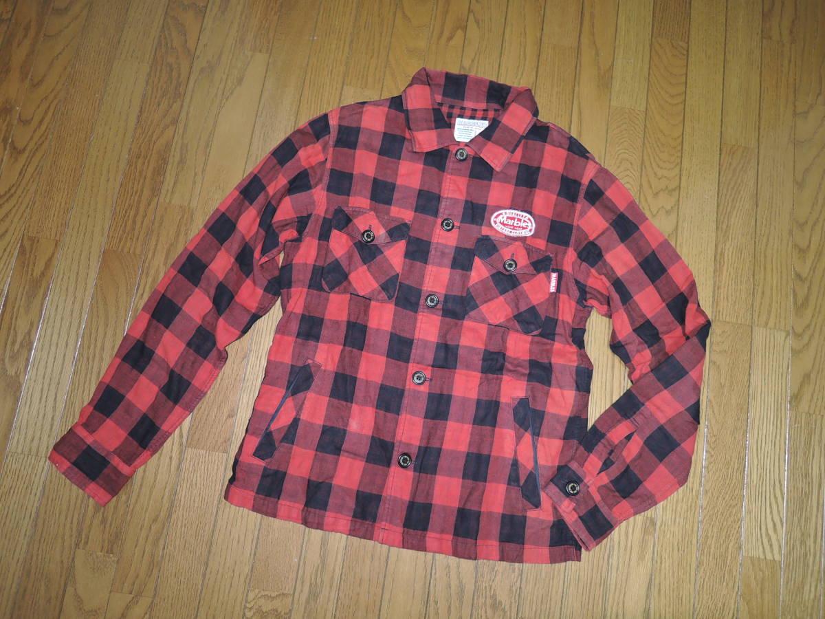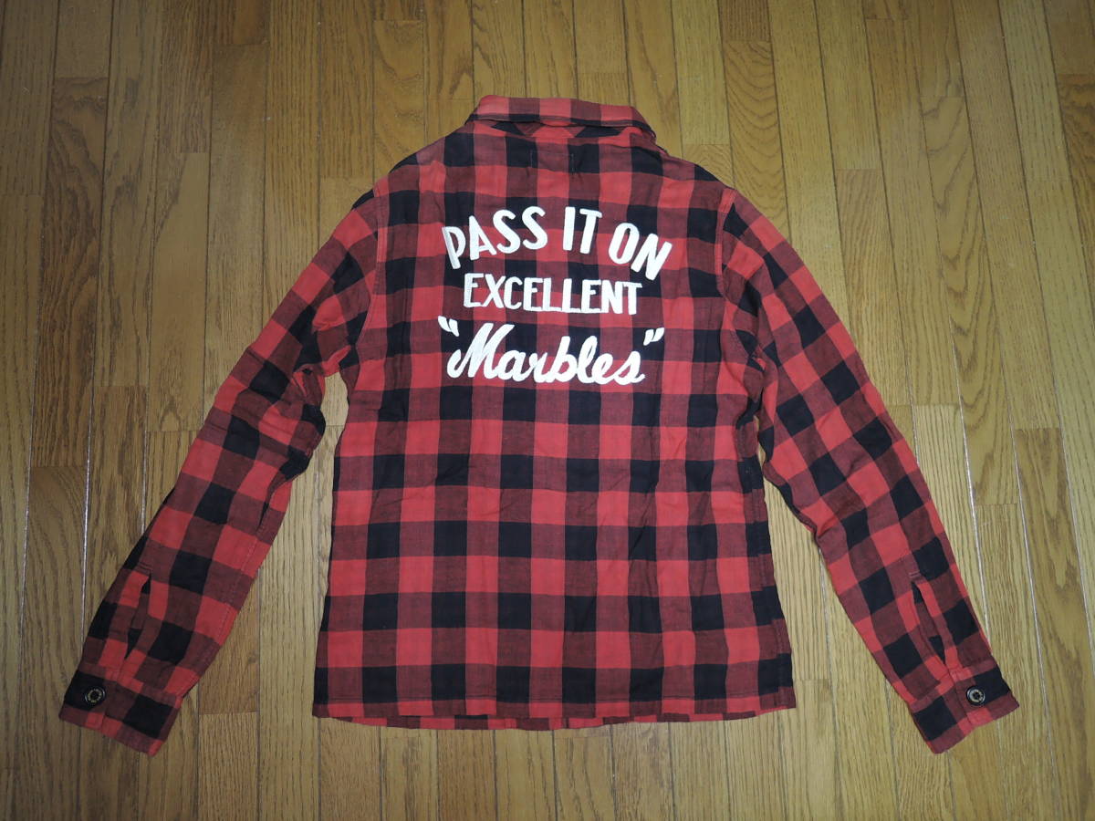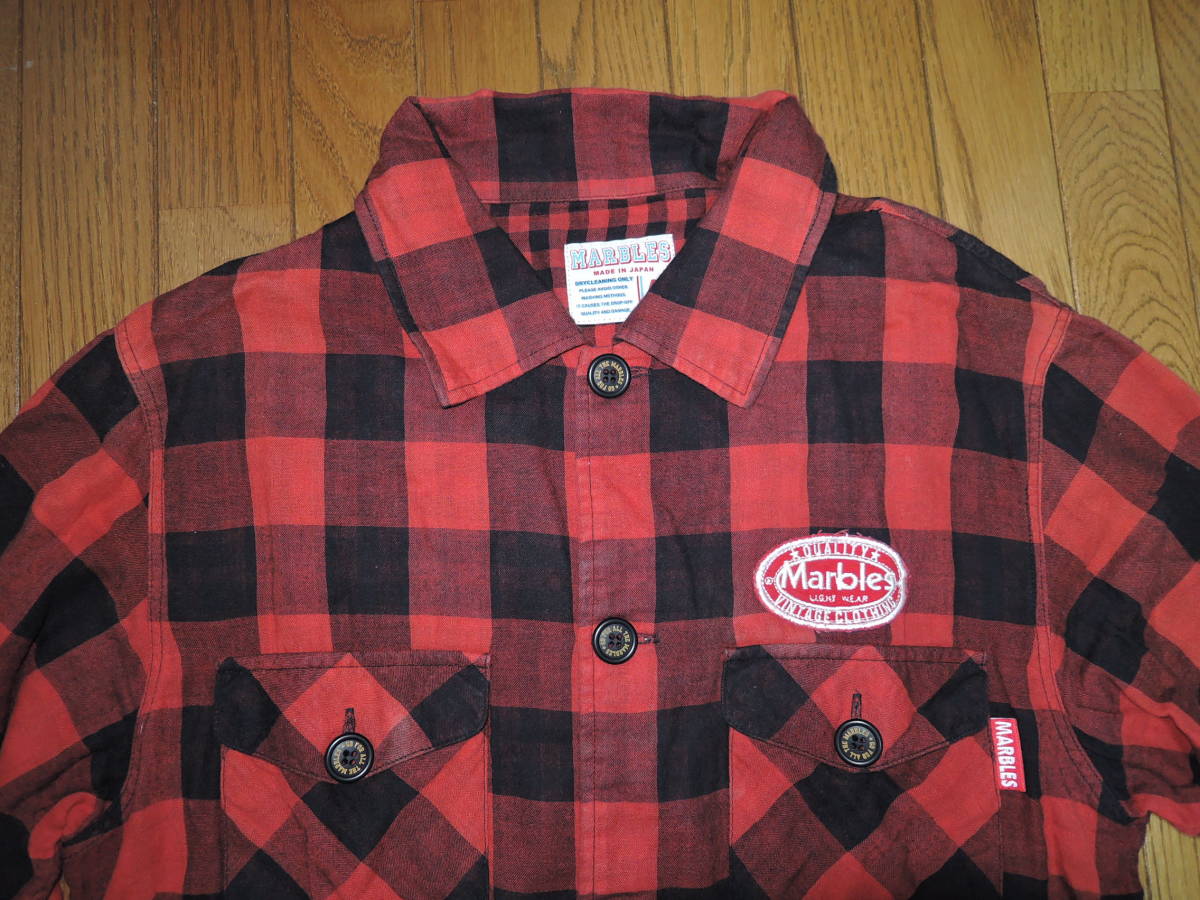 MARBLES マーブルズ 背ロゴ チェックシャツ M 赤黒 刺繍 ステッチ / 長袖シャツ
