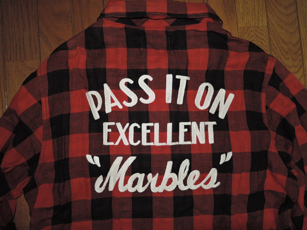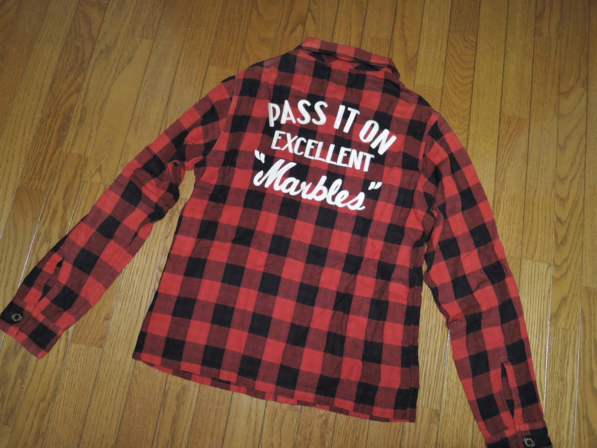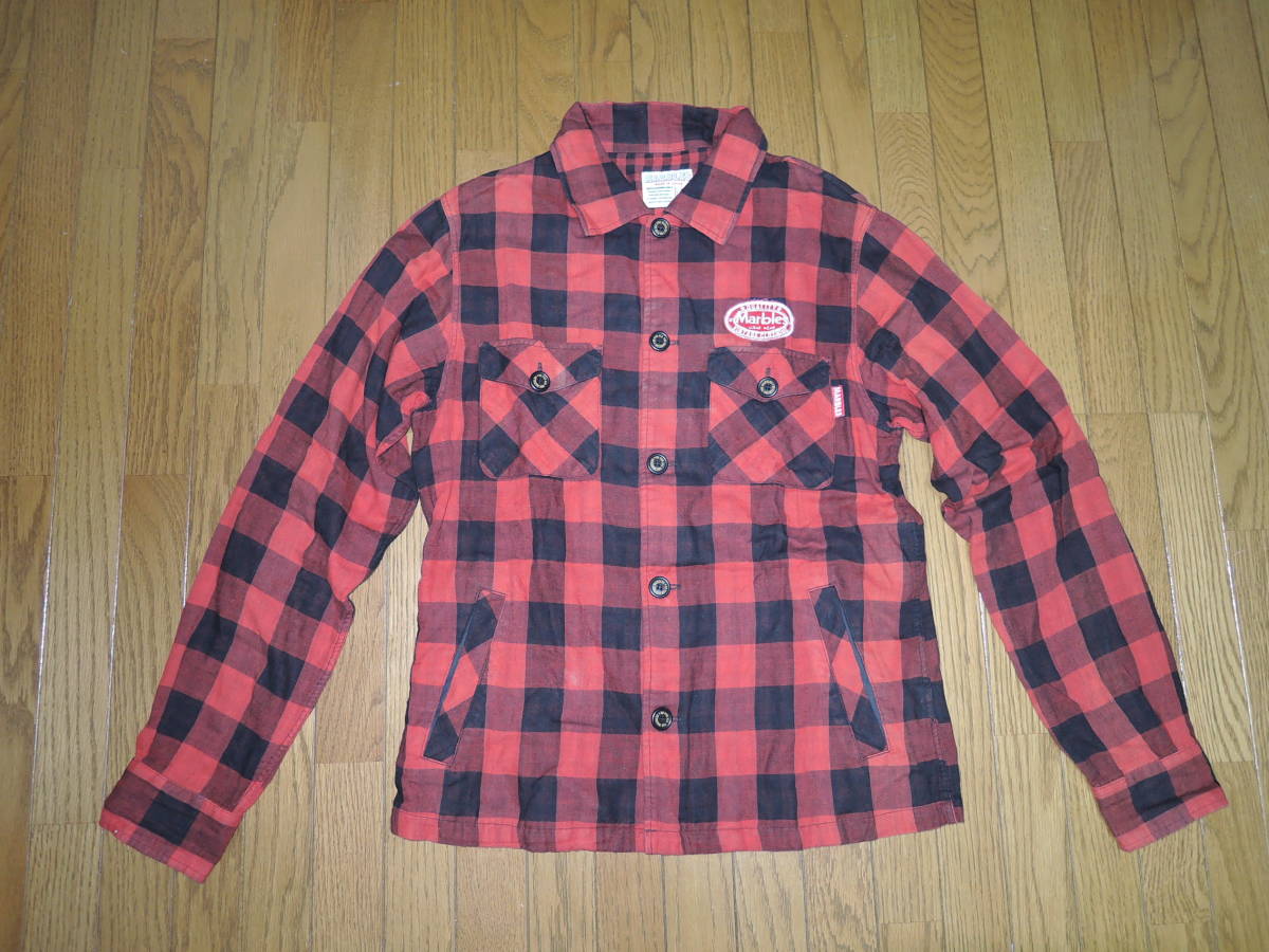 MARBLES マーブルズ 背ロゴ チェックシャツ M 赤黒 刺繍 ステッチ / 長袖シャツ