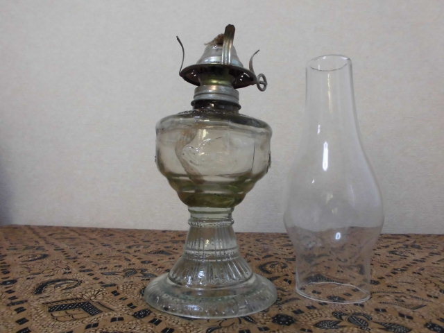 【商品説明】ガラスランプ。汚れ有。傷みは特にないです。【サイズ】全長34・火屋18・台19センチ【2021年3月13日出品】