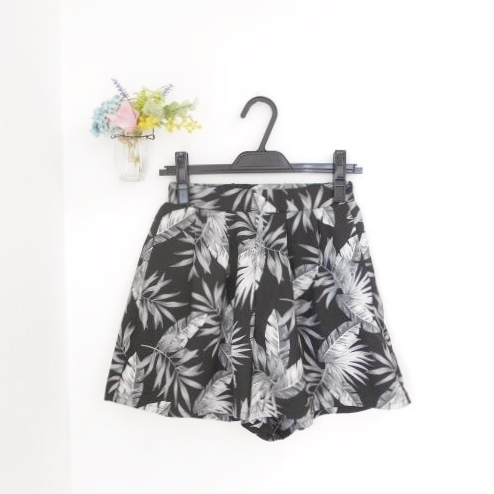 デュカ Dukkah レディース 春夏秋頃に着て頂けそうなキュロットです。お色は黒・ブラック地にボタニカル柄が素敵な一品です。ウエストは後ろがゴムになります。