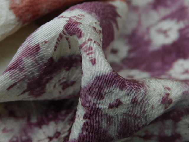 掛け衿にわずかに衿汚れ・茶ジミが少々と、全体にくすみ・変色・小さな茶ジミ・小シミが数ヶ所あります。