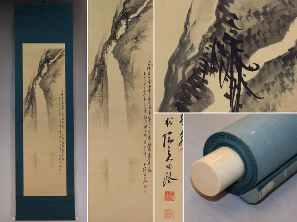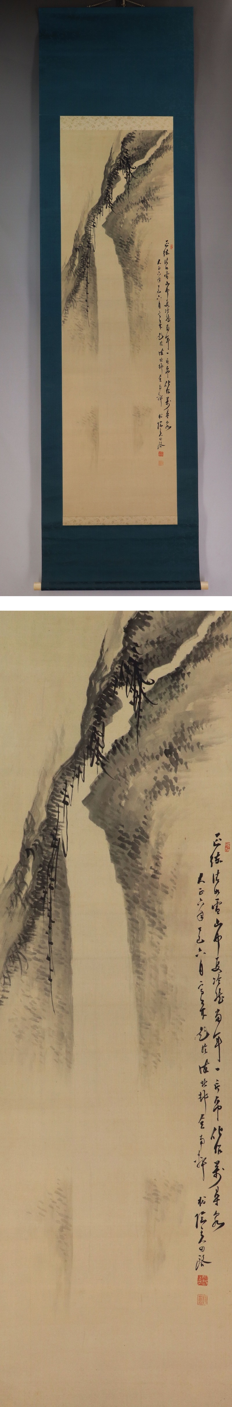 | №2112023【真作】田中柏陰【飛泉図】◆絹本◆共箱◆掛軸 | |
