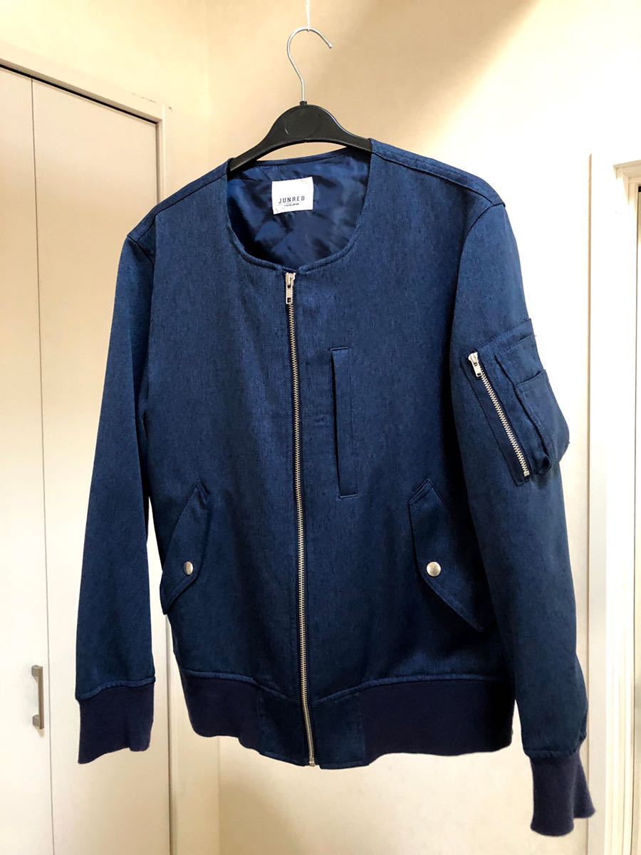 ジュンレッド JUN RED ボンバー ブルゾン ノーカラー MA-1 ジップアップ 紺 M