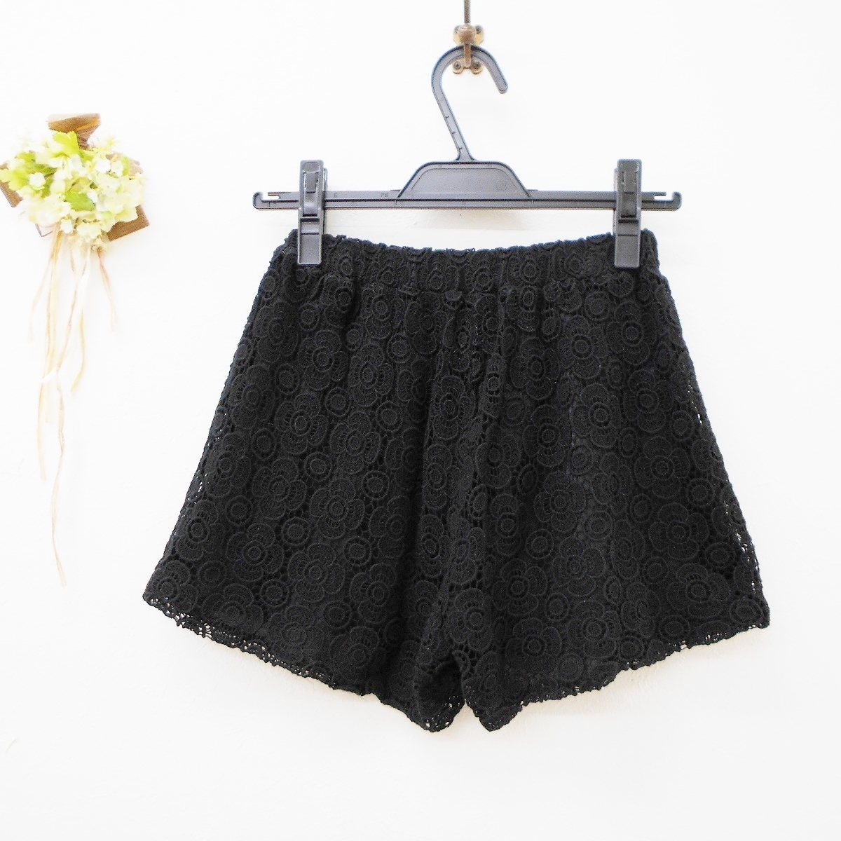 シスター ジェニィ Sister Jenni のレース生地の綺麗なショートパンツです。お色は黒・ブラックで春夏などに明るいトップス・モノトーン等に合わせてオシャレにどうぞ。