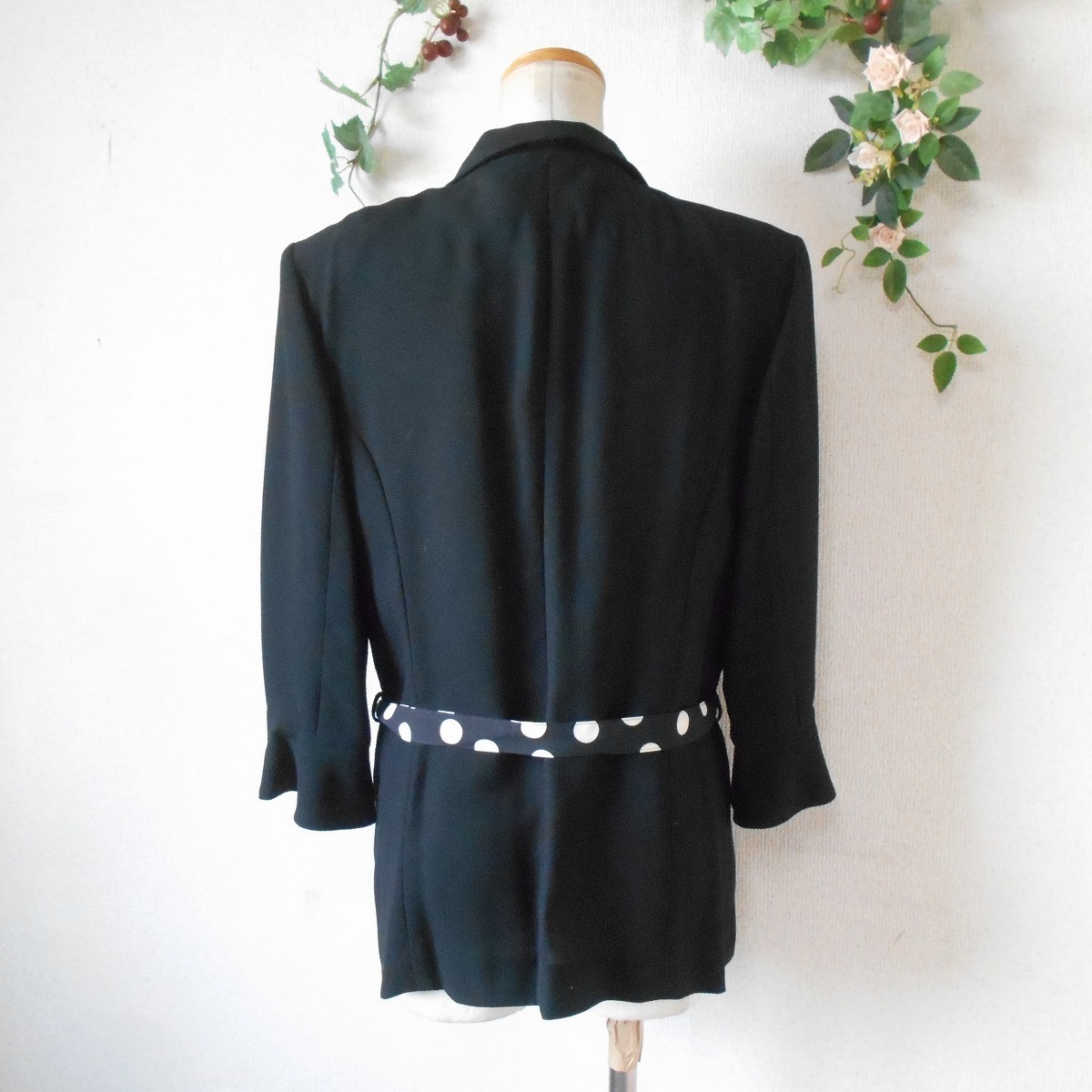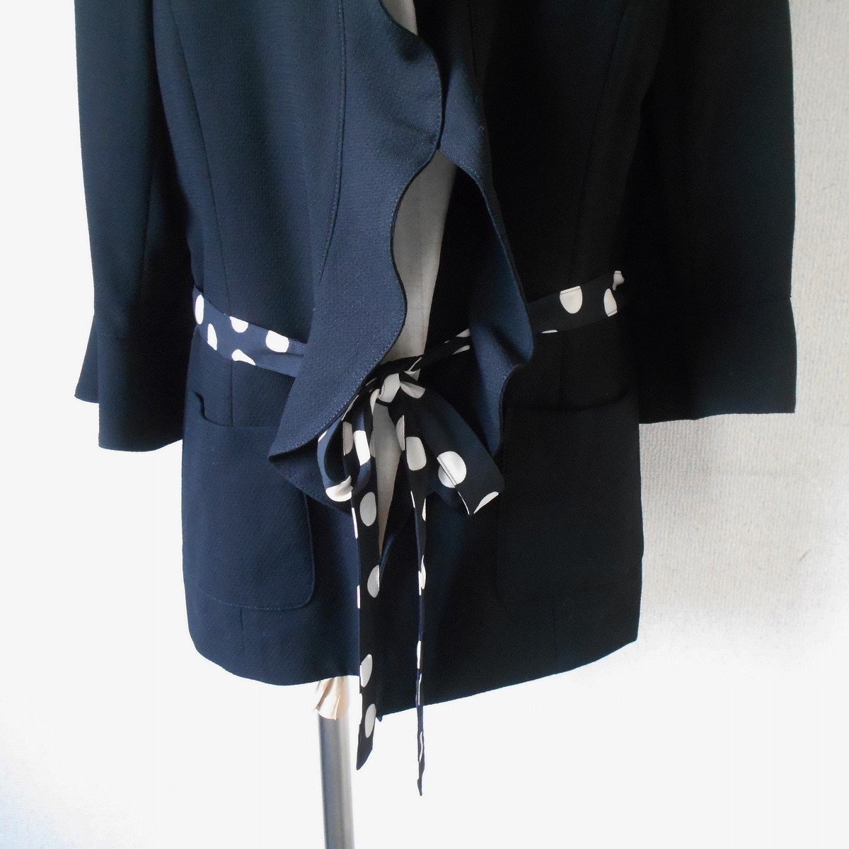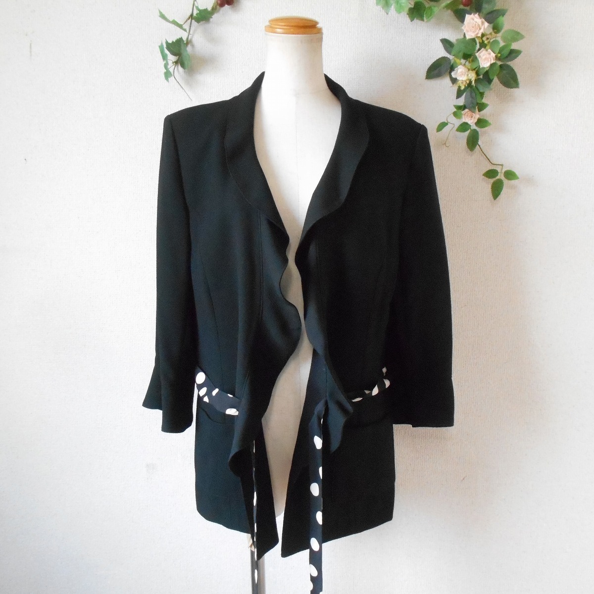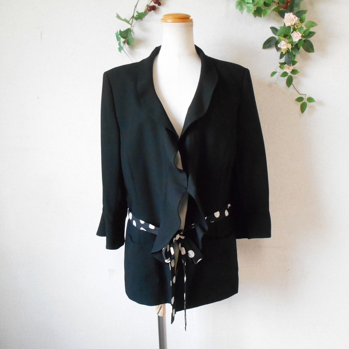 未使用 インゲボルグ INGEBORG 春夏 向き 水玉 柄 リボン 付 ジャケット 黒 日本製 LL