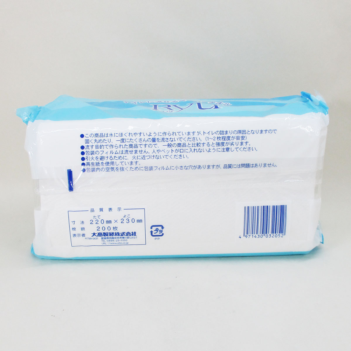 送料無料 ペーパータオル 業務用 トイレに流せるタイプ RYUタオル 中判サイズ 220×230mm 200枚x30個(1ケース)代金引換便不可