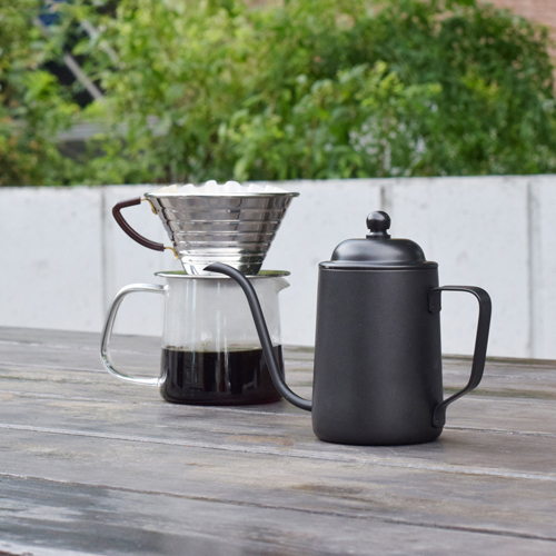 コーヒー3杯分のコンパクトなドリップポットは、ハンドリップやドリップパックのドリップに持ってこい。使い勝手のよいサイズ感で重宝します。