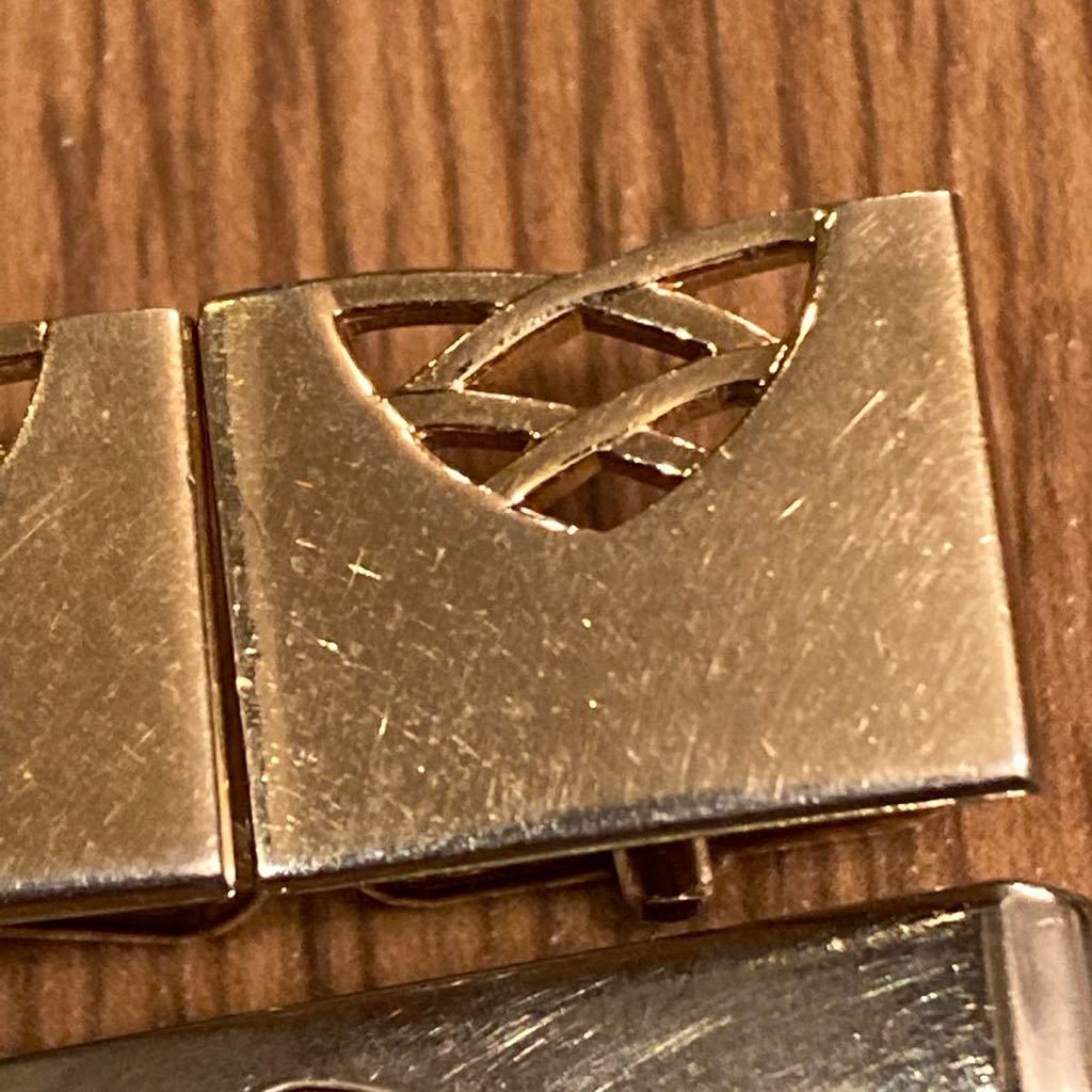 ネクタイピンはメッキ摩耗でトーンが薄くなっています。