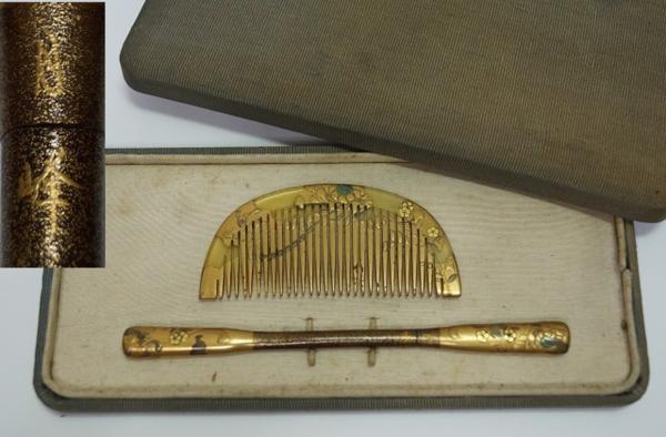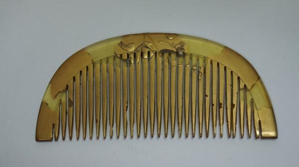 素材:鼈甲。重さ13g(セットで)。くし>サイズ3.8cm×8.2cm。欠けている箇所あります。かんざし>長さ13.7cm、幅1cm。銘が入っています。いたみがありますがケースに入っています。その他古いもので、経年の擦れ、汚れ、傷等ございます。状態は写真をご参照頂けますようどうぞよろしくお願いいたします。