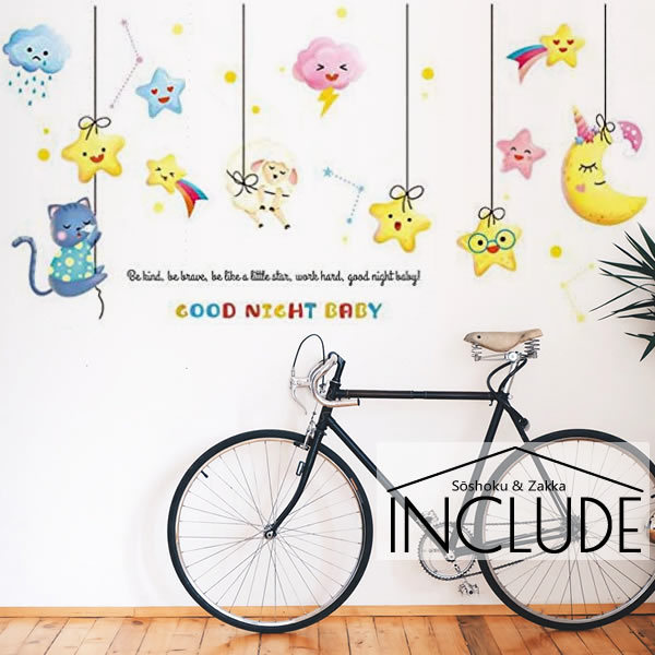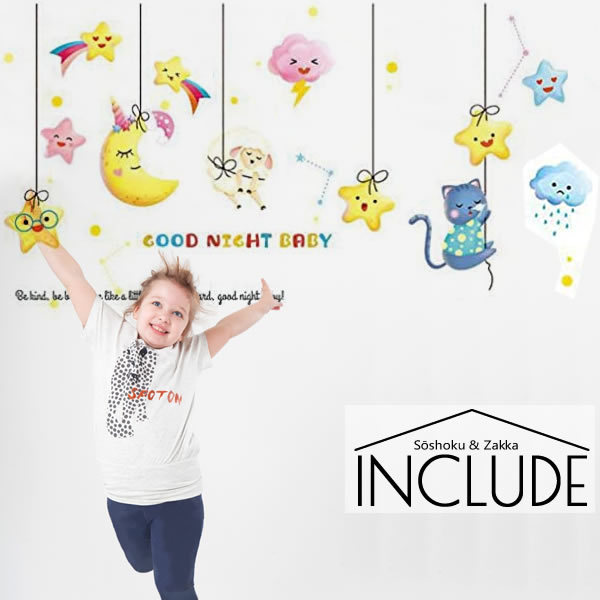 壁ステッカー ウォールステッカー 猫 月 羊 星 キャット ムーン スター ぶら下がり 子守 寝付かせ
