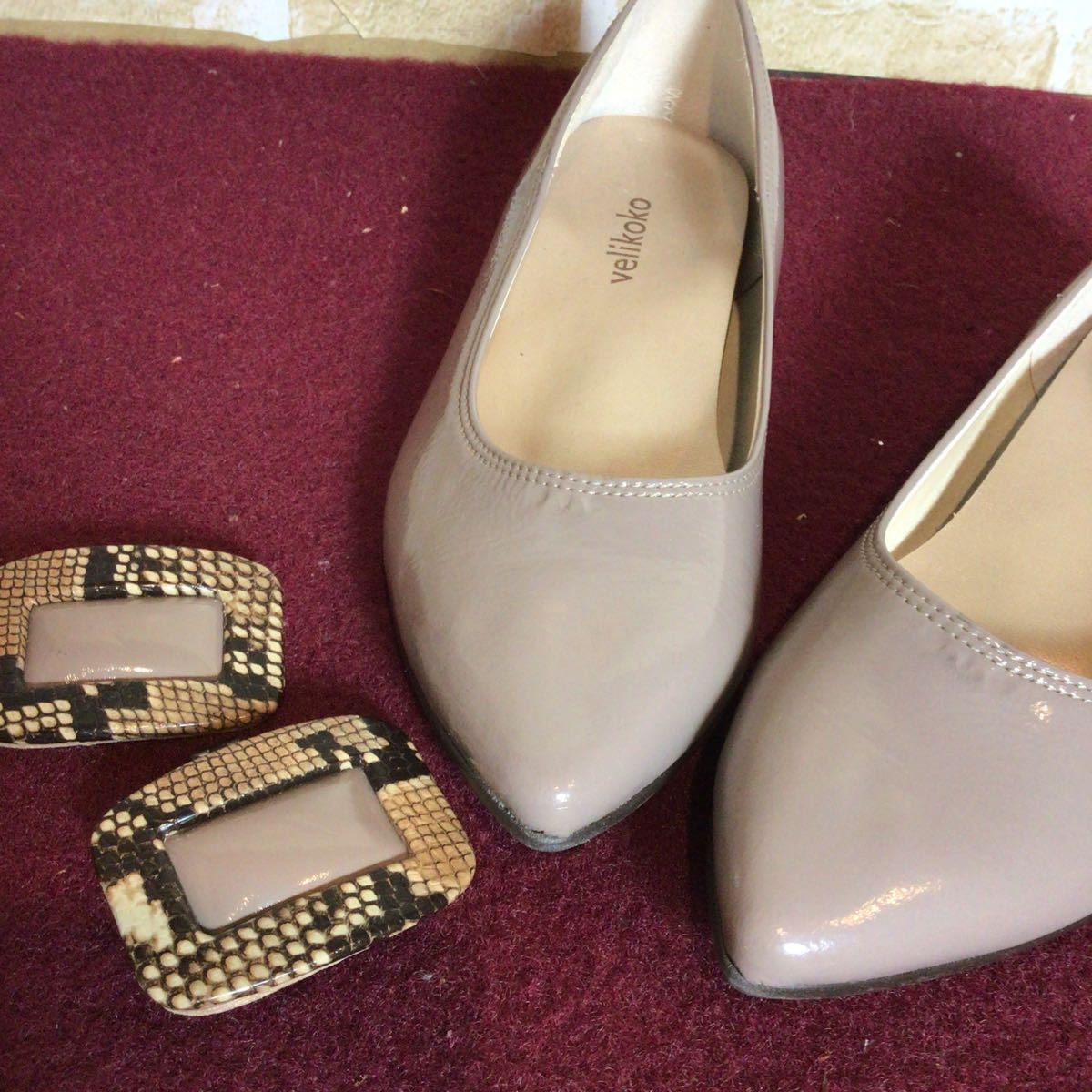 【売り切り!送料無料!】A-185 velikoko!2wayローヒールパンプス!21.5cm!日本製!取り外し可能!シュークリップ!シンプル!おしゃれ!中古!美品