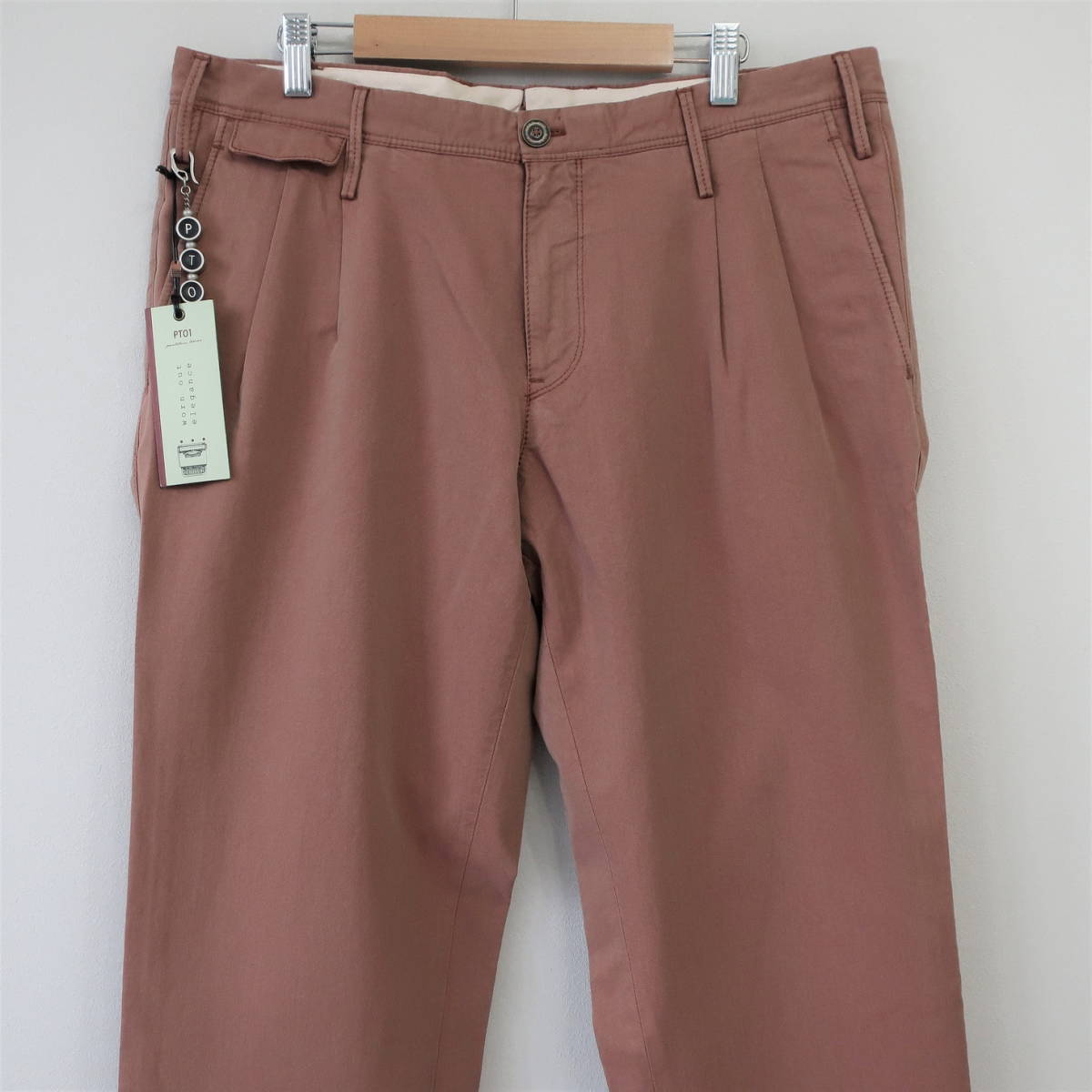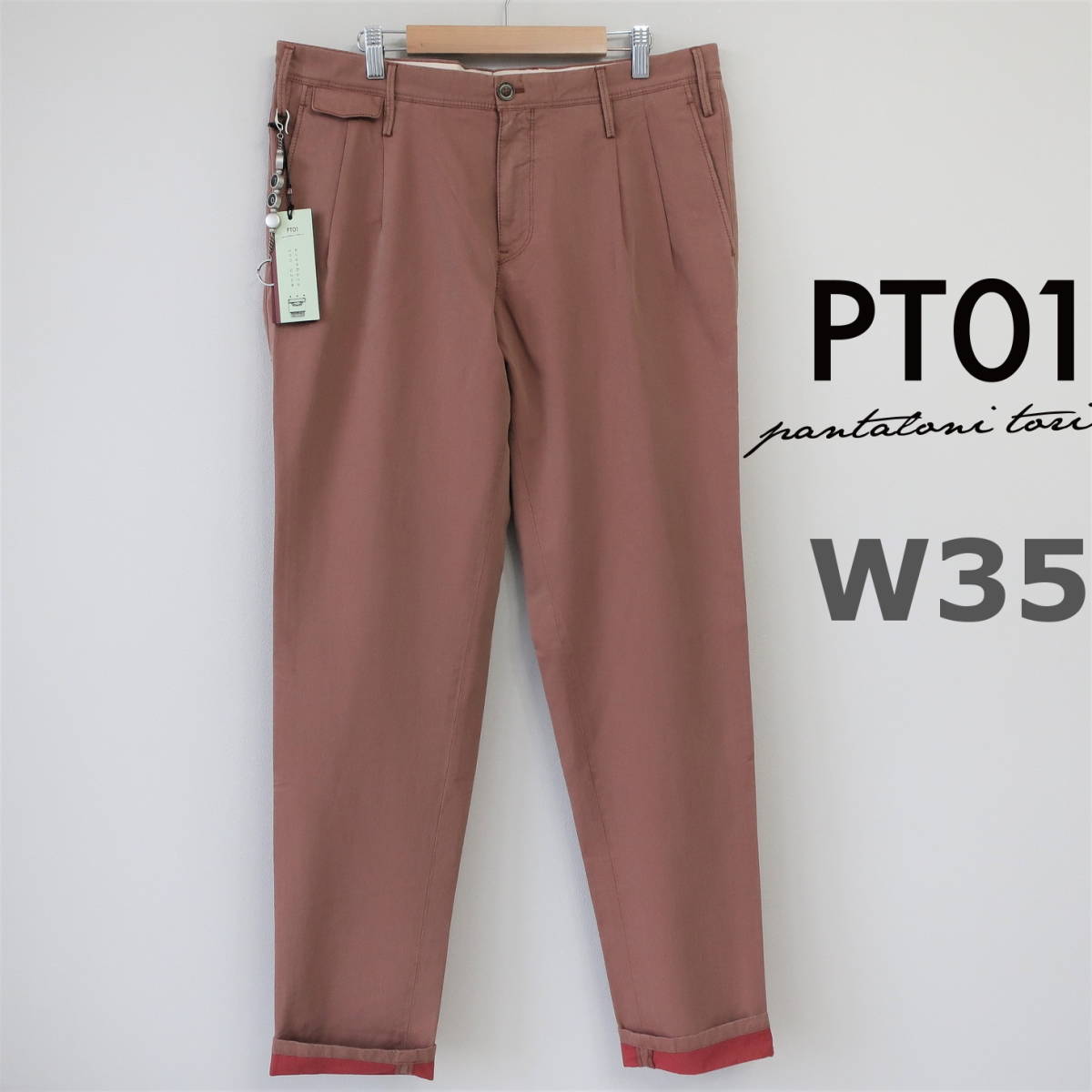 新品タグ付き PT01 ピーティーゼロウーノ 春夏 メンズ 高級 チノパン ARIAL WORN OUT 洗い感 テーパードパンツ ピンク W35 XLサイズ