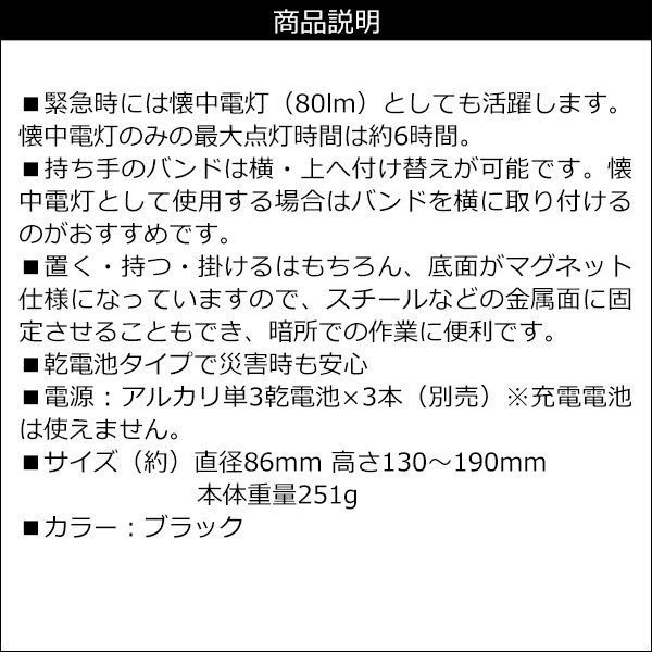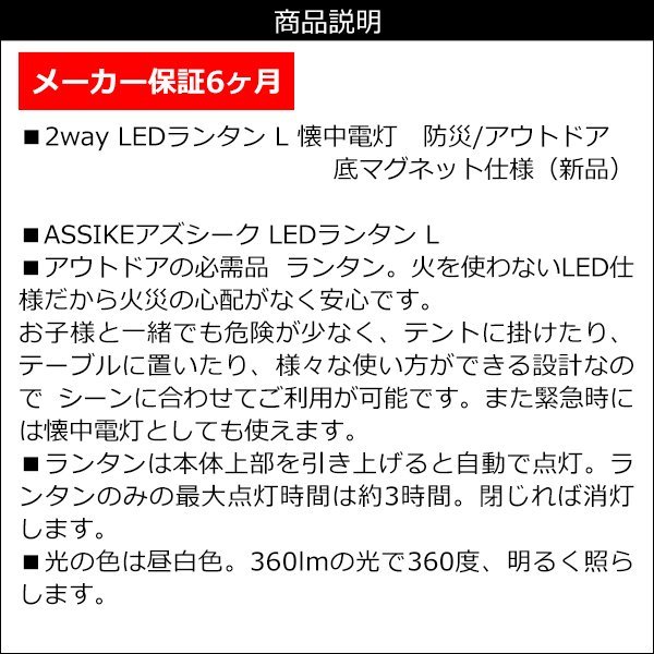 LED ランタン【L】2way 懐中電灯 防災 アウトドア キャンプ 底マグネット仕様/22